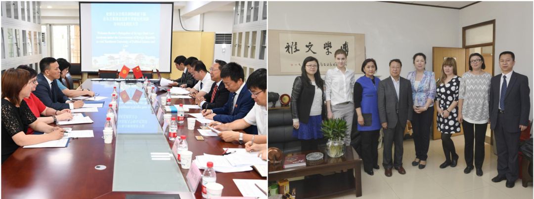 左:中亚法学专家参加我校举办的“第四届中国-亚欧法律论坛”