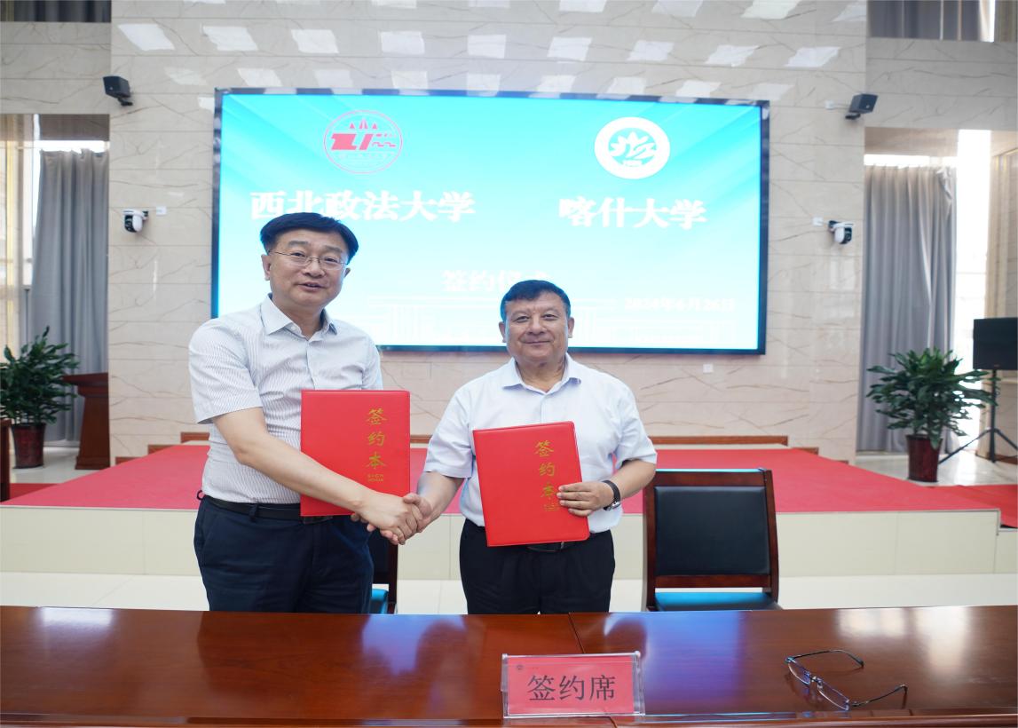 6月26日上午,我校与喀什大学签署合作共建协议,两校以增强服务西北社会发展稳定能力为目标,就共同促进学科建设、人才交流培养、教育教学质量、学术科研发展开展合作共建。范九利表示,两校在学生互换培养、教材合作编写、项目共同推进等方面有着巨大的合作潜力,期待双方进一步加强沟通交流,携手共进。喀什大学校长买买提明•木沙表示期望与西北政法大学开展深入合作与交流,推动合作机制常态化,合作内容多元化,取得更为显著的合作成效。
