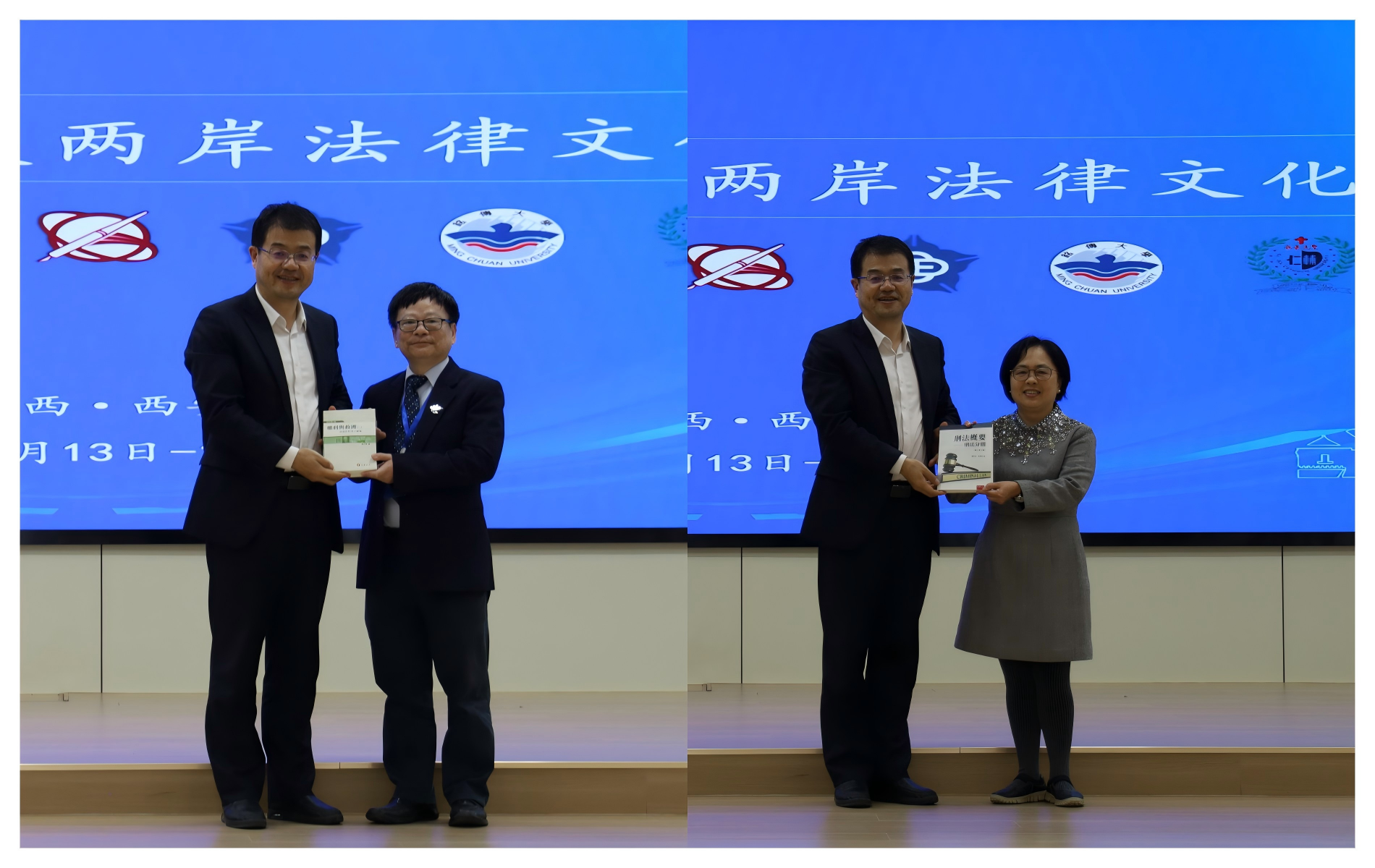 台北大学法律学院法律学系教授张文郁、中正大学法学院教授卢映洁向我校赠送法学专著