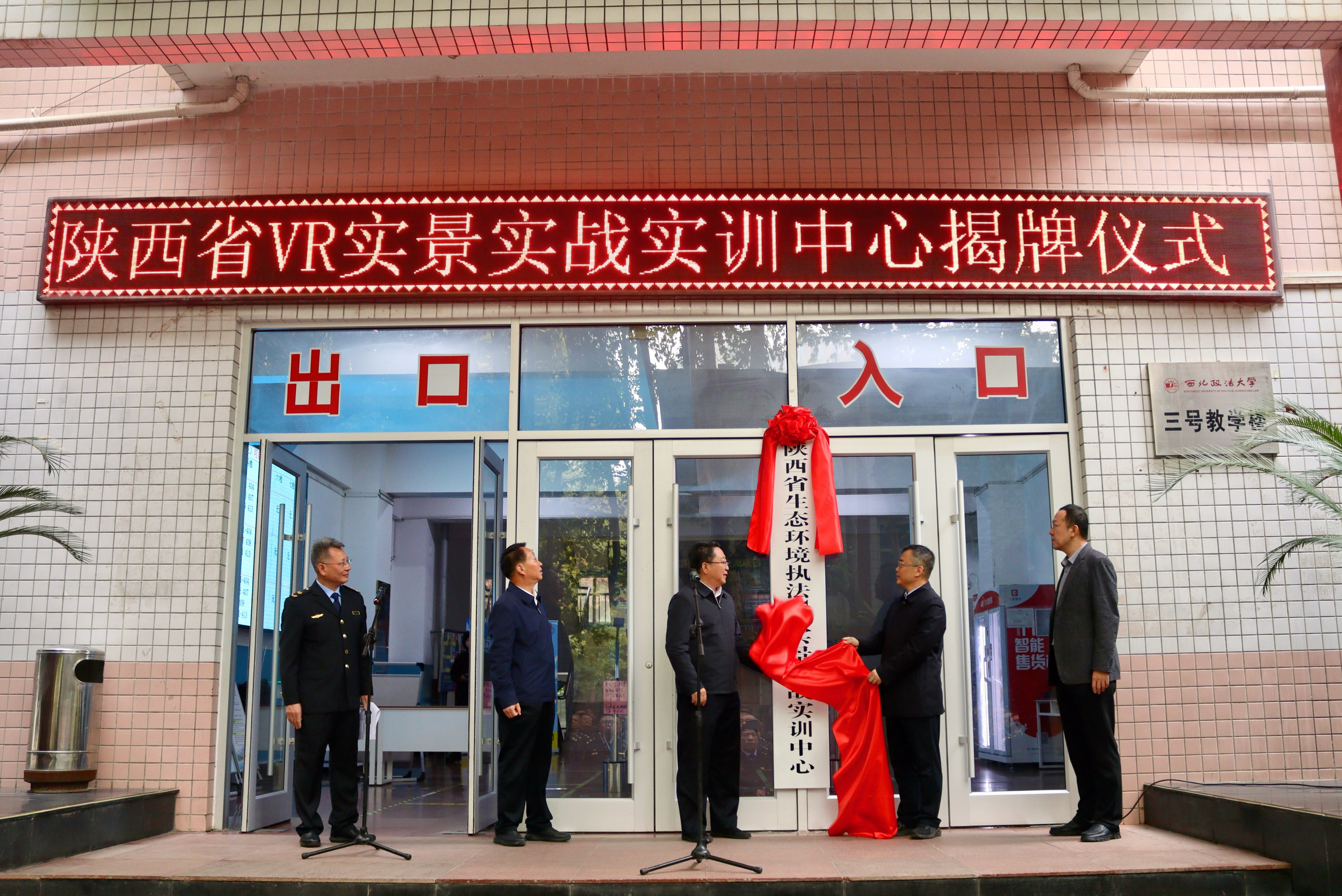 11月6日,西北政法大学环境执法VR实景实战实训中心揭牌仪式在雁塔校区举行。省生态环境厅党组成员、副厅长赵甲宏,我校副校长赵全宇,省生态环境执法总队总队长赵瑞,我校相关部门负责人、陕西凯鑫源科技有限公司代表出席活动。