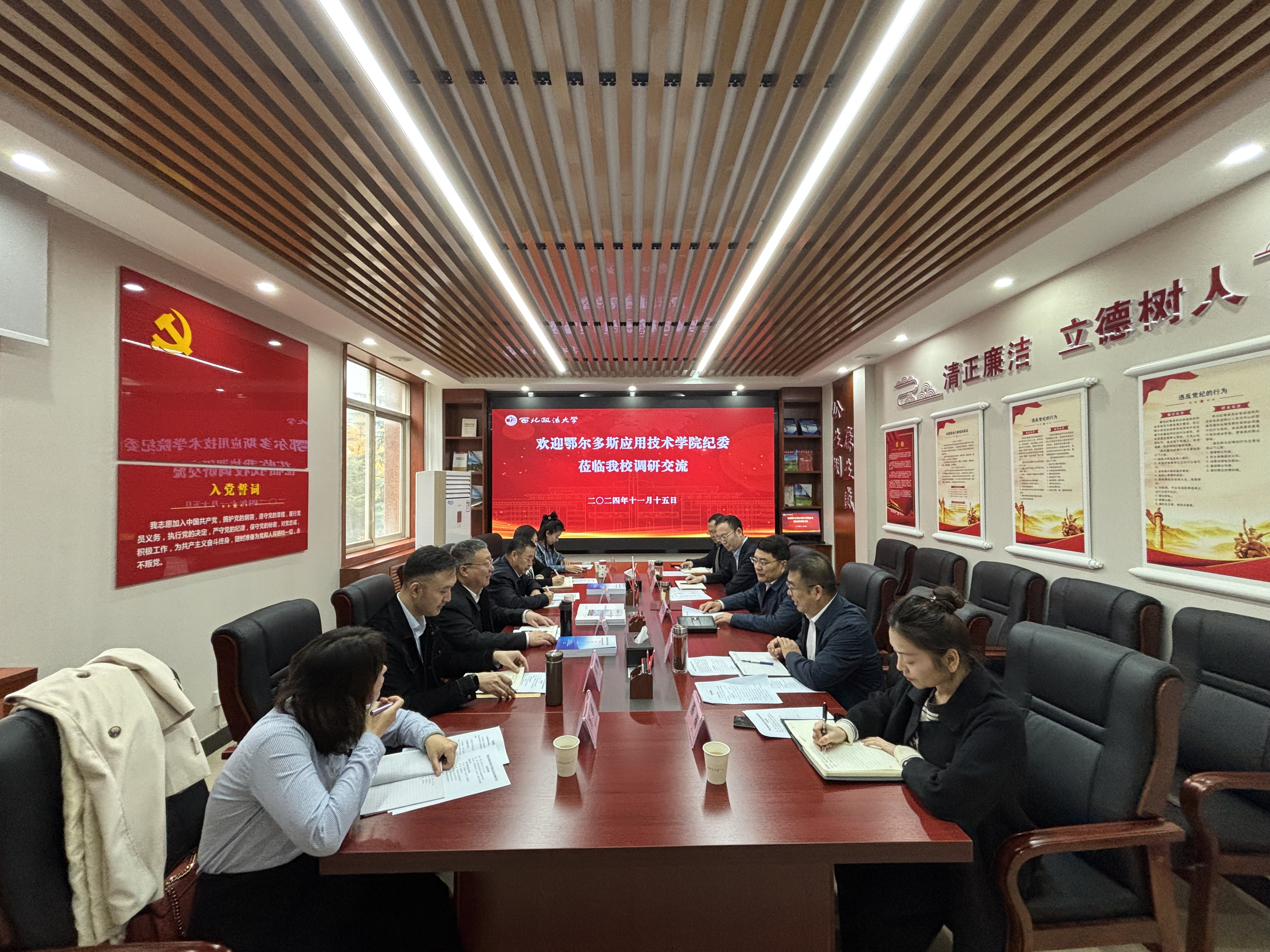 11月15日上午,鄂尔多斯应用技术学院党委委员、纪委书记、监察专员李少东一行来我校调研交流纪检监察和巡察工作。校党委副书记、纪委书记、监察专员刘志彬主持座谈会。