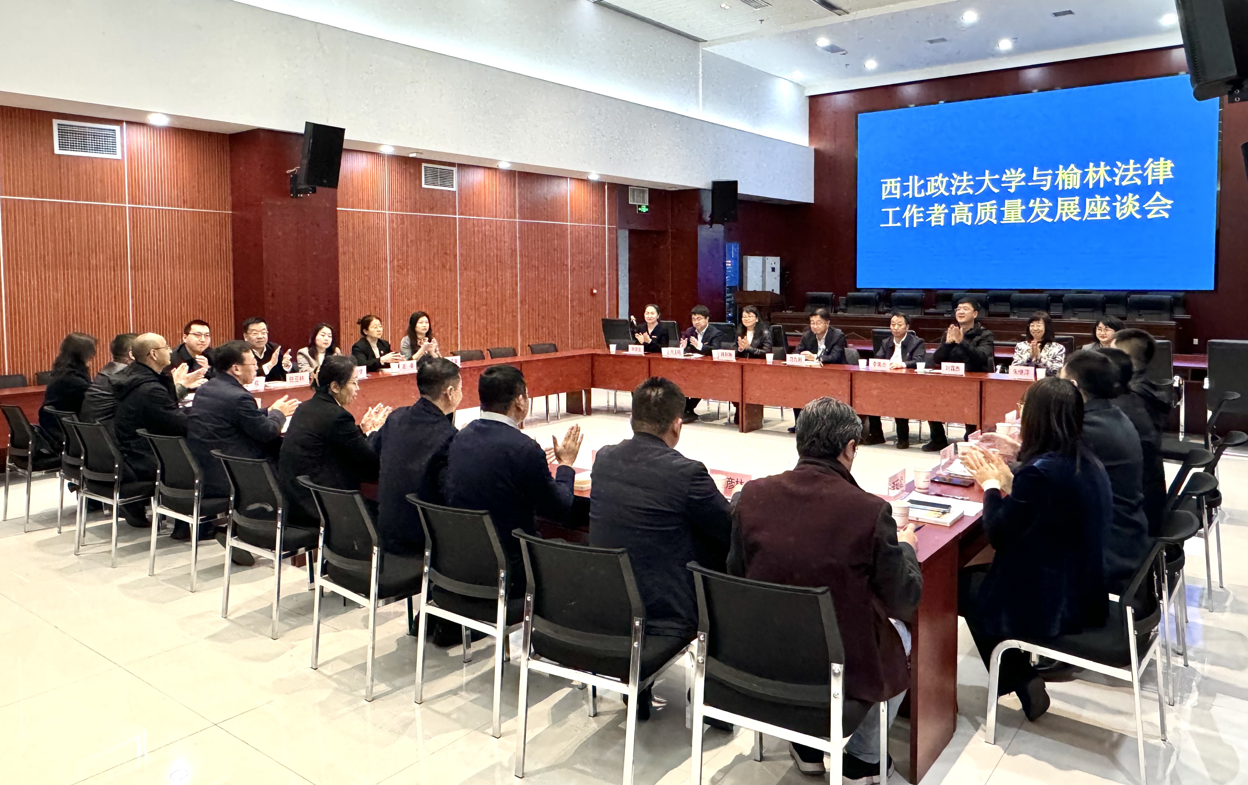 范九利一行看望了在榆部分校友,并与榆林法律工作者在市司法局举行了高质量发展座谈会。榆林市司法局局长刘静妮主持座谈会。与会人员围绕法学教育教学、法治榆林建设进行讨论。