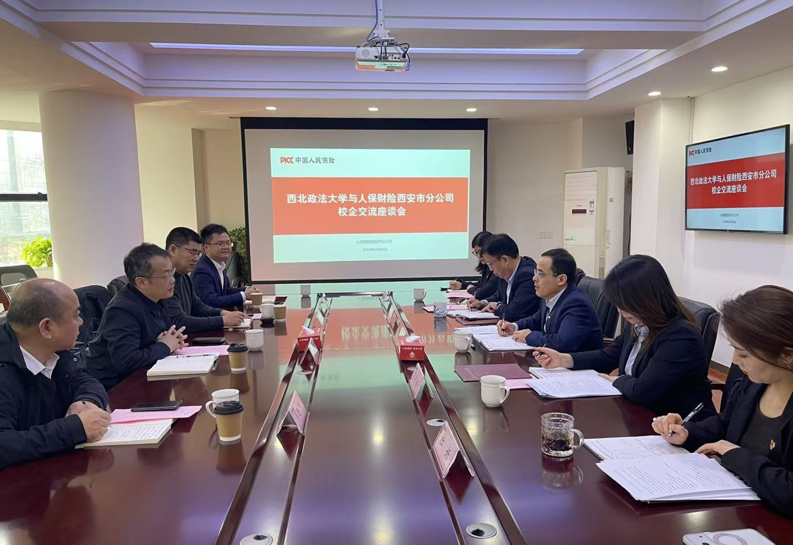 与会双方围绕法学及相关专业人才培养模式、学生实习就业机制、保险法疑难案件论证以及保险法学科建设等议题展开深入讨论,并就探索建立常态化交流机制达成初步共识。本次座谈为我校与人保财险西安市分公司进一步深化合作奠定了良好基础,对推动产教融合、提升人才培养质量、拓宽学生就业渠道具有积极意义。 经济法学院党委书记李永宁,国内合作与校友工作处等相关负责人参加座谈。