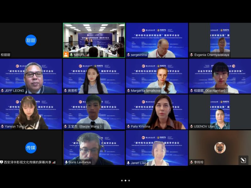 7月12日,由陕西省教育厅主办、我校与俄罗斯西北管理学院承办、马来西亚梁潘黄律师事务所、英国邓迪大学能源法研究中心、吉尔吉斯斯坦国家法律大学协办的“碳中和与全球环境治理”国际学术会议以线上线下相结合的形式在我校长安校区举办。副校长王健教授出席会议并致辞,俄罗斯西北管理学院法学院院长Sergey Sergevnin教授、副院长Christina Paliy教授、Boris Levitanus副教授、马来西亚梁潘黄律师事务所梁柏林律师、英国邓迪大学Janet Xuanli Liao博士、吉尔吉斯斯坦国家法律大学博士研究生Ulan Usenov、我校国际法学院、国际交流与合作处负责人和师生代表共计60余人参加会议。
