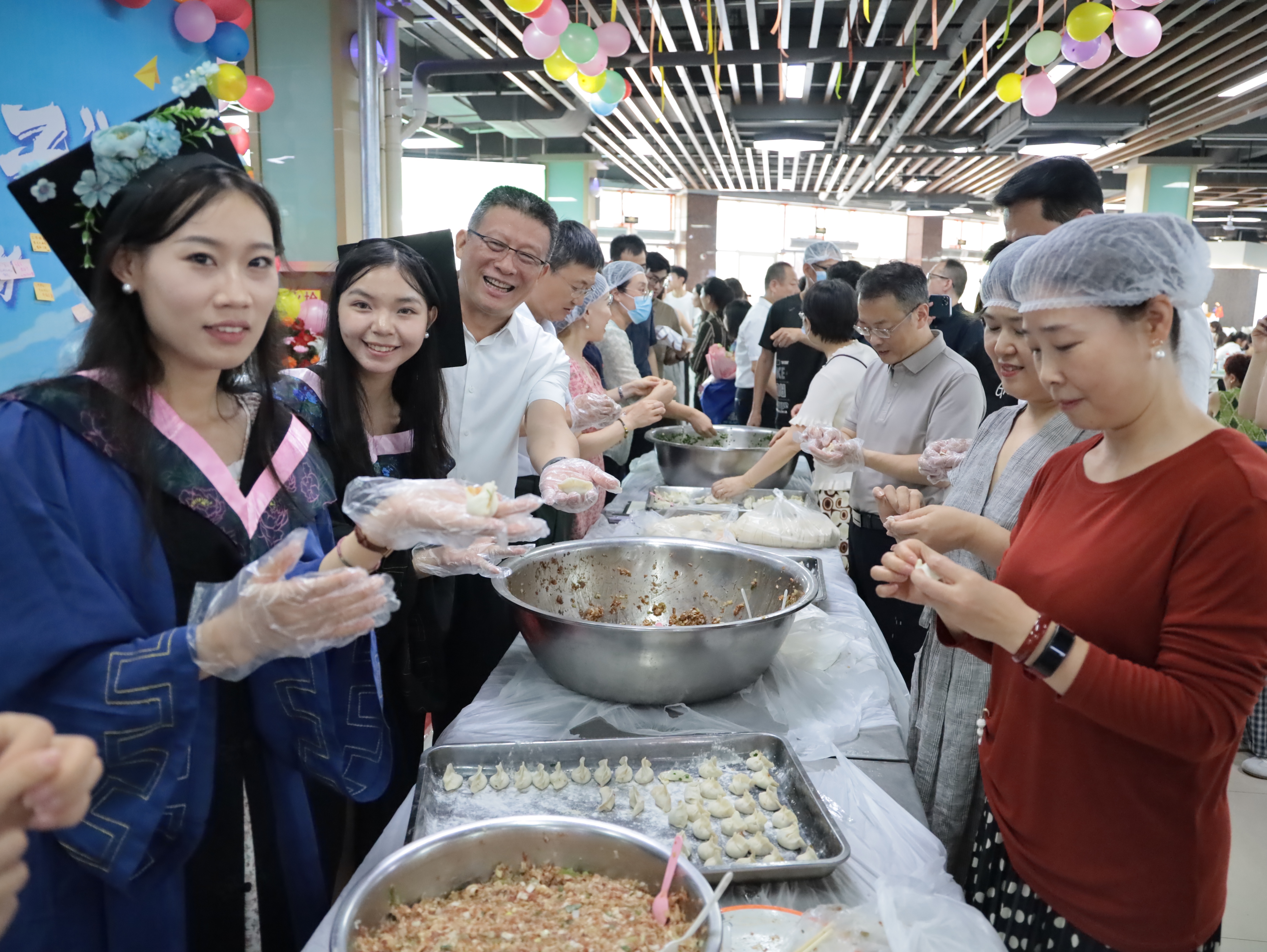 活动现场,校领导与老师们一起动手为毕业生包饺子,一盘盘饱含深情的饺子,承载着母校对毕业生的殷切嘱托与美好祝愿。毕业生们凭专属“骄子券”免费领取暖心饺子,在品尝美食的同时,更感受到来自母校的温暖关怀。
