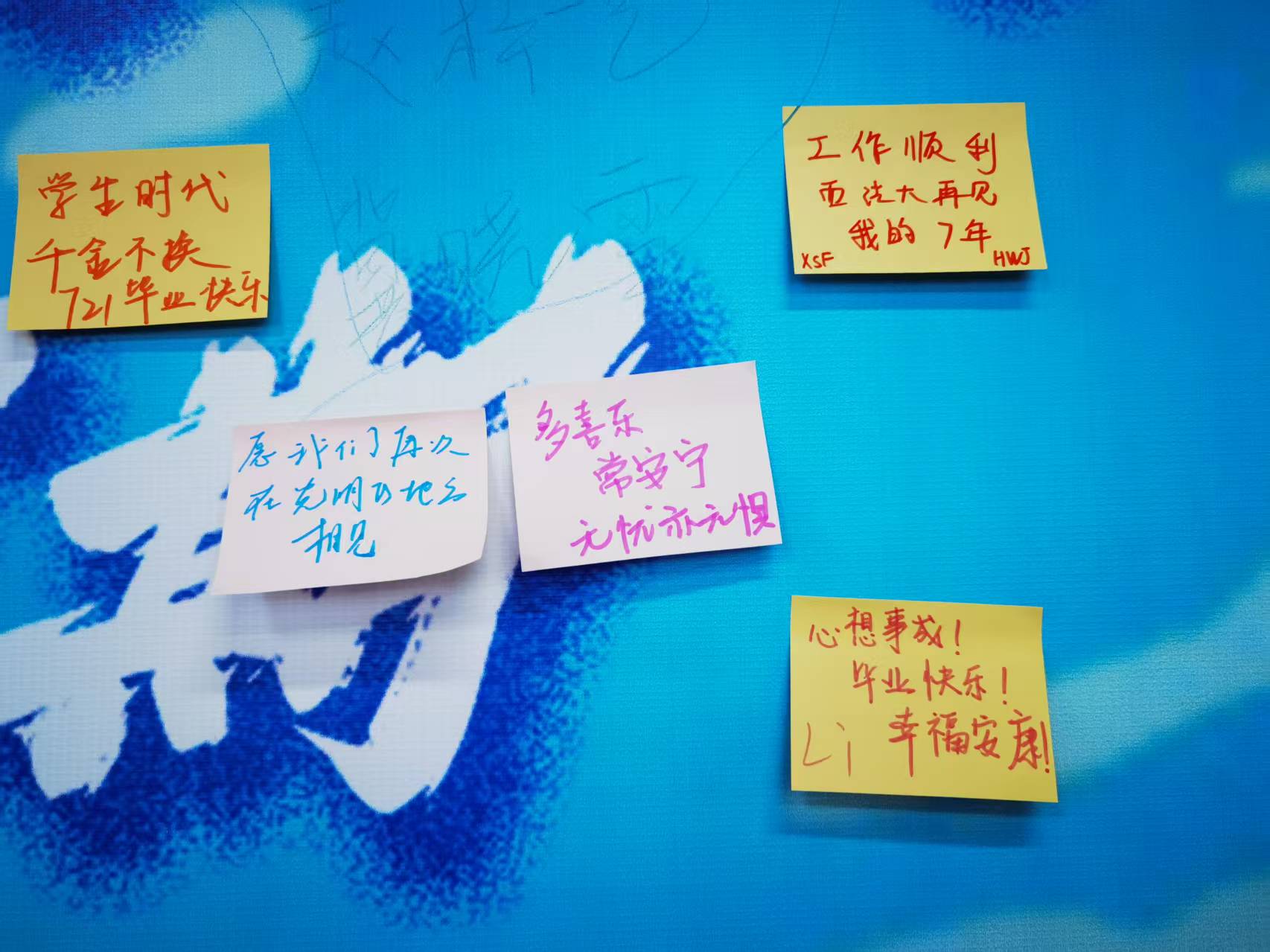 活动现场还设置了留言墙,毕业生们纷纷写下毕业心愿和对母校的祝福。“西北政法大学我的青春4年”“和西法大一起越来越好”“愿我们再次在光明的地方相见”等真挚话语贴满墙面,纸短情长,道不尽对母校的眷恋和祝福,写不完对未来之憧憬与豪情。