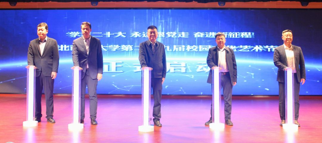 随着嘉宾们共同走上舞台点亮灯柱,第29届校园文化艺术节正式启动。