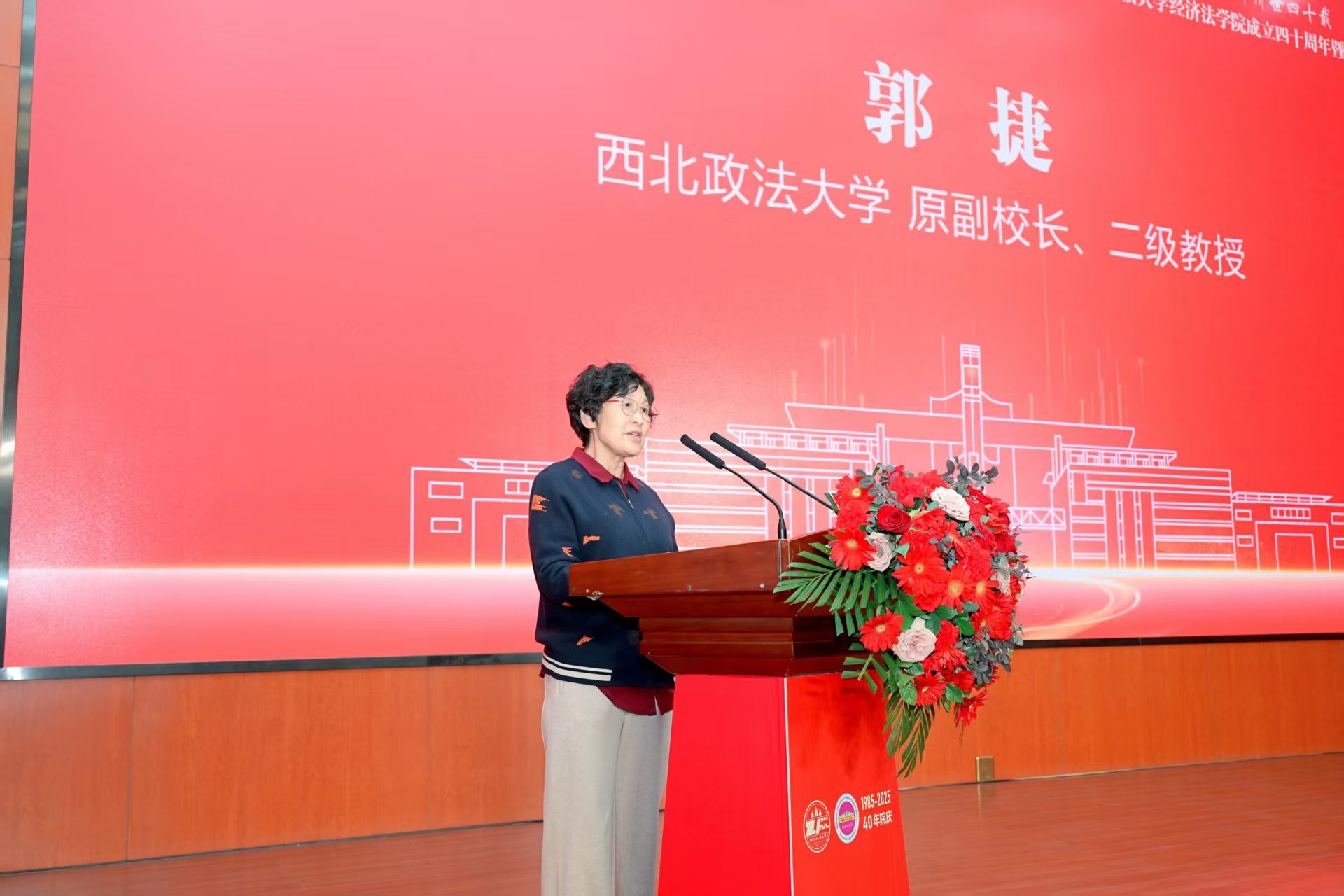 教师代表、我校原副校长郭捷教授深情回顾了学院奠基创业、创新育人、转型改制三个发展阶段,勉励学院要以习近平法治思想为指引,不断深化教育教学改革,构建更加科学的本硕博多层次贯通制人才培养体系,培养卓越法治人才。