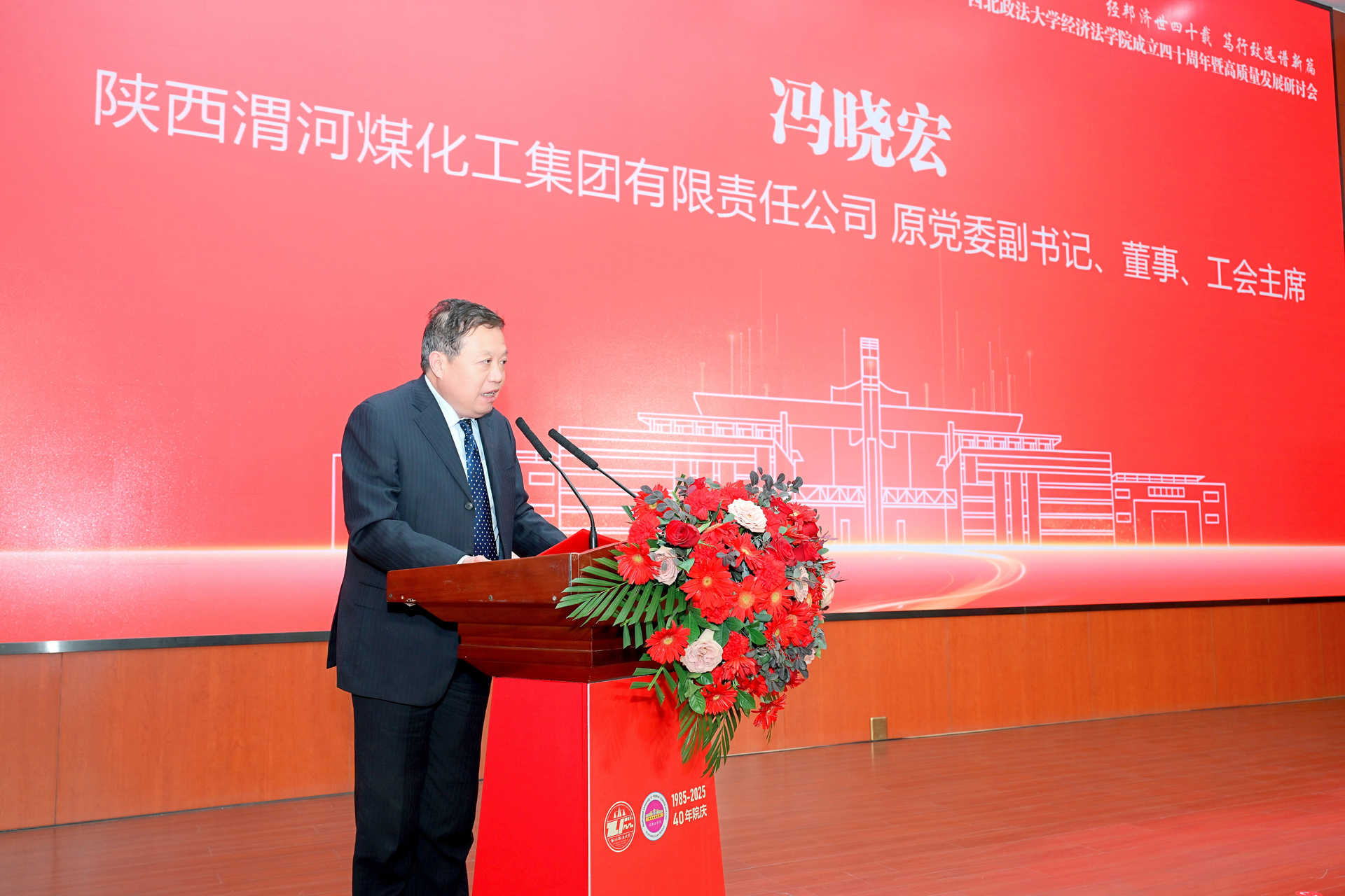 1985级校友、陕西渭河煤化工集团有限责任公司原党委副书记冯晓宏在发言中饱含感恩之情,分享了自己在校的求学经历,代表广大校友郑重表态,将永葆初心弘扬学院优良传统,以卓越业绩回报母校,积极为学院发展添砖加瓦,守护共同的精神家园。 在校生代表、2023级本科生王旭泽表示将传承红色基因与学院精神,深耕法治初心,以青年之智、青年之力为经济法治事业注入新动能。