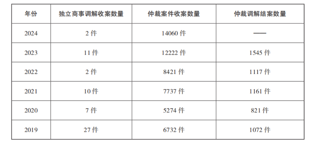 最后,尽管社会资源在当前商事调解发展中发挥了重要作用,但依然存在配置不足的问题。一方面,行业协会、工商联、律师事务所等社会机构出资设立了大量的商事调解组织;另一方面,商事调解组织主要以民办非企业单位的形式设立和运行。这些都是社会资源在商事调解中的作用体现。然而,从整体来看,目前社会资源在商事调解中的配置仍有不足。比如,商事调解的社会认知依然较低,商事调解行业自治组织尚不健全,法学院校的商事调解教学较为匮乏等。在社会资源相对匮乏的情况下,商事调解不得不通过依附于诉讼和仲裁,获得相应的社会资源支持。