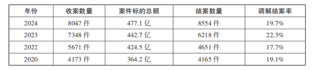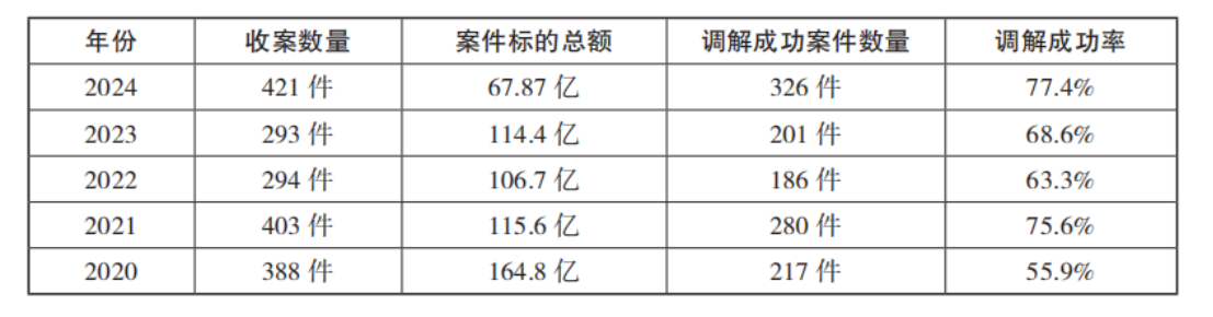 表2上海经贸商事调解中心案件数据(2020-2024)