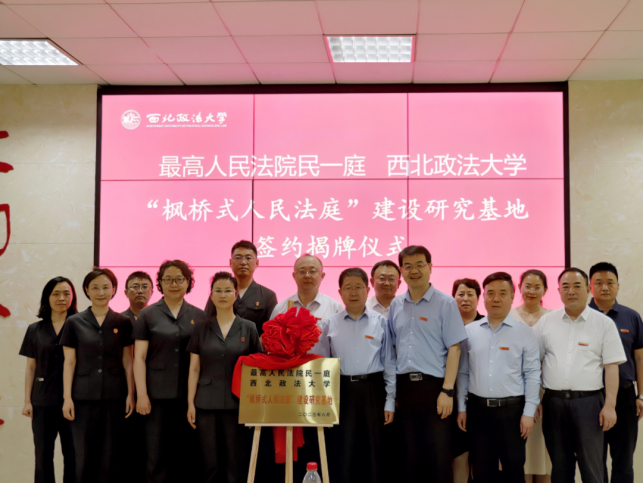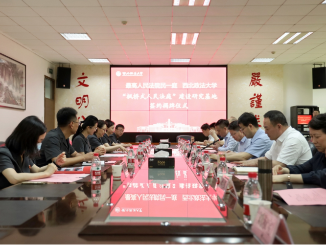 6月9日上午,最高人民法院民一庭“枫桥式人民法庭”建设西北政法大学研究基地签约揭牌仪式在我校长安校区举行。最高人民法院民一庭副庭长吴景丽,陕西省高级人民法院审判委员会专职委员赵学玲,我校党委书记孙国华出席仪式。签约揭牌仪式由副校长张荣刚主持。