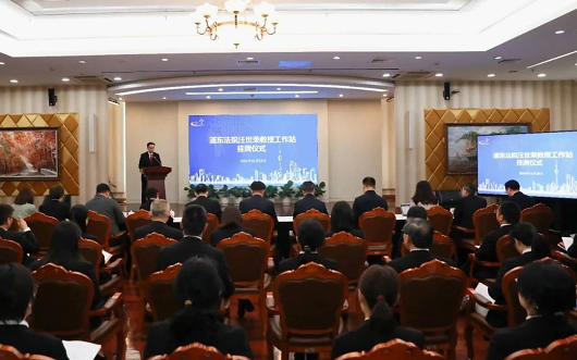 为贯彻落实中共中央办公厅、国务院办公厅《关于加强新时代法学教育和法学理论研究的意见》,根据新时代上海法院队伍建设现代化“1+6+X”工作体系要求,积极探索高校专家进法院柔性挂职新模式,10月28日下午,上海市浦东新区人民法院(以下简称浦东法院)举行汪世荣教授工作站挂牌仪式。