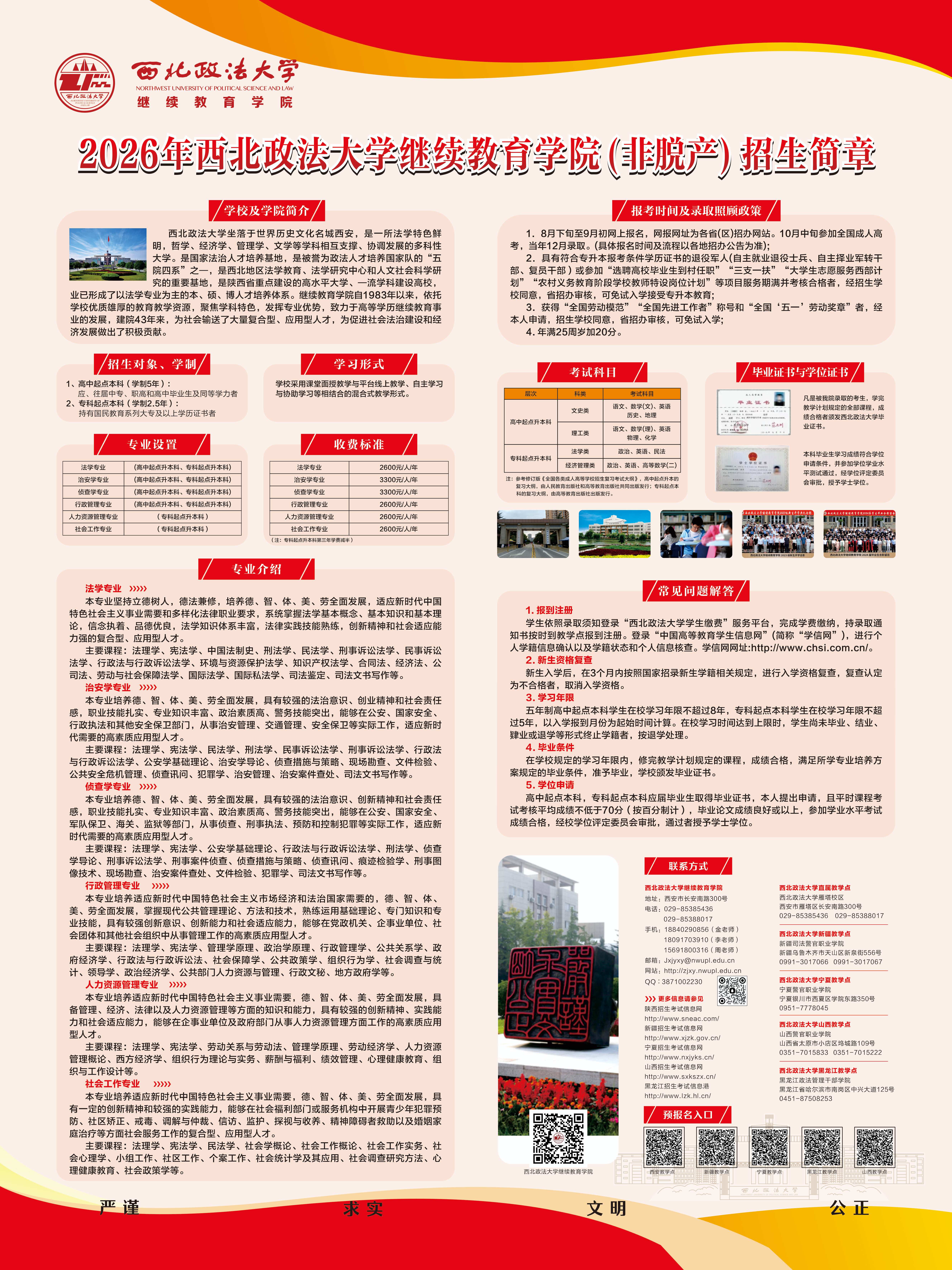 2026年西北政法大学继续教育学院(非脱产)招生简章