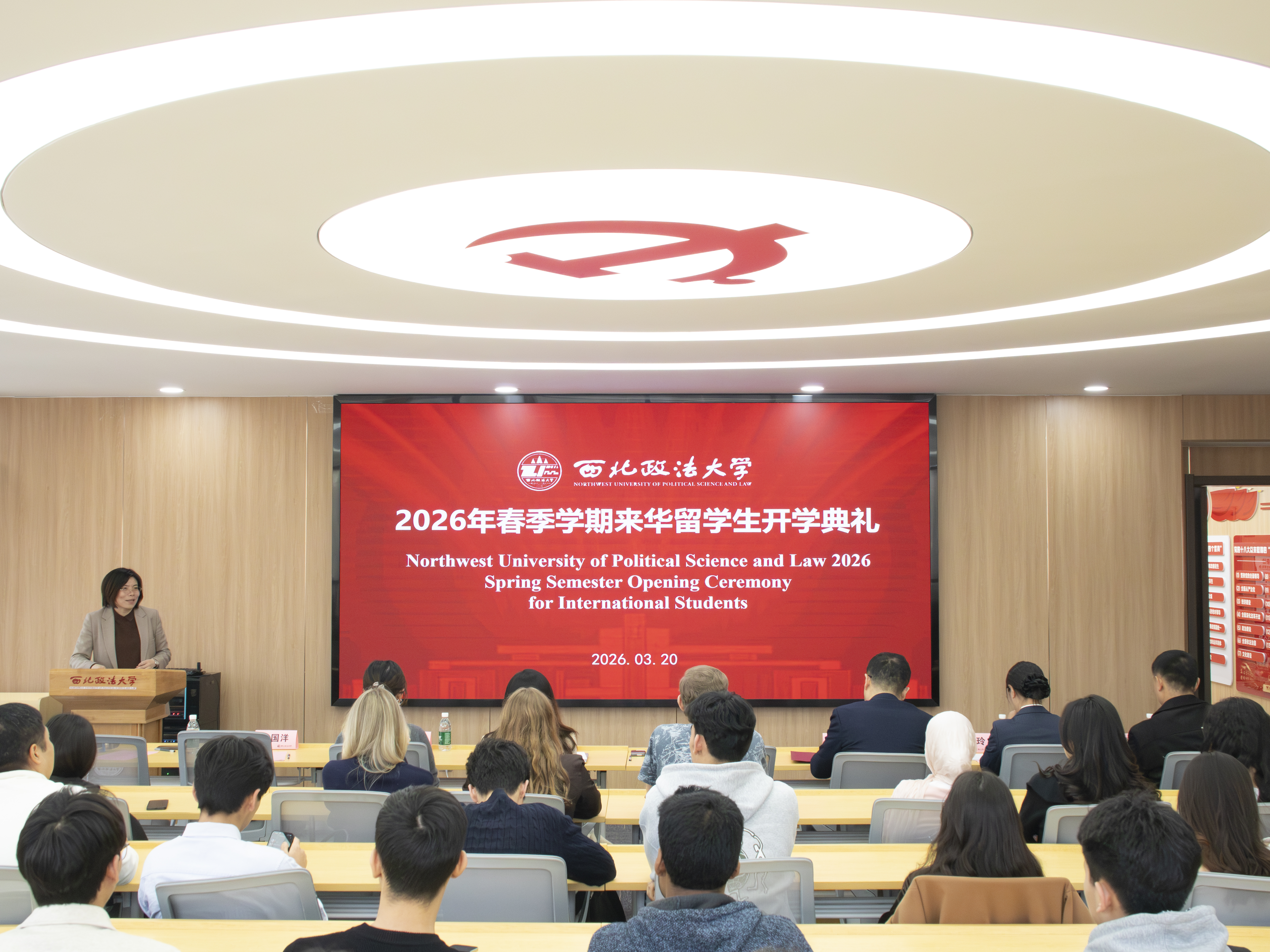 3月20日下午,我校在长安校区“一站式”学生社区举行2026年春季学期来华留学生开学典礼,并开展入学教育,副校长张荣刚出席并致辞,国际教育学院院长王莹莹主持。 张荣刚向留学生们表示欢迎和问候。他指出,学校紧扣“一带一路”倡议,持续深化国际教育合作,来华留学生既是校际合作的亲历者,更是中外文化交流的重要桥梁。面向全体留学生,他提出三点希望,一是勤学善思,筑牢学业根基;二是包容互鉴,融汇多元文化;三是胸怀天下,争做中外交流使者。学校将持续优化来华留学生的学习平台与成长环境,期待学生们在华学有所成、广结友谊,以青春之力架设中外友好交流的坚实桥梁。 南哈萨克斯坦大学学生蒂娜作为新生代表发言,对学校的关怀表示感谢,坦言初到中国便感受到温暖与支持,表示将珍惜学习机会,在多元文化氛围中与各国同学交流互鉴。开学典礼后,国际教育学院开展入学教育活动,相关单位围绕校纪校规、保险保障及校园安全等领域进行讲解。 近年来,学校坚持开放办学理念,持续推进国际化战略。本学期共有16名交换生新生加入,分别来自俄罗斯、乌兹别克斯坦、哈萨克斯坦、塔吉克斯坦、吉尔吉斯斯坦等国的6所合作院校,在校来华留学生总数近70人。国际教育学院将进一步完善留学生服务体系,推动中外学子在交融中互促共进。 国际教育学院、经济学院、公安学院、保卫处相关负责人,教师代表与全体来华留学生参会。 (供稿:国际交流与合作处 国际教育学院 撰稿:卫佳 审核:王莹莹)