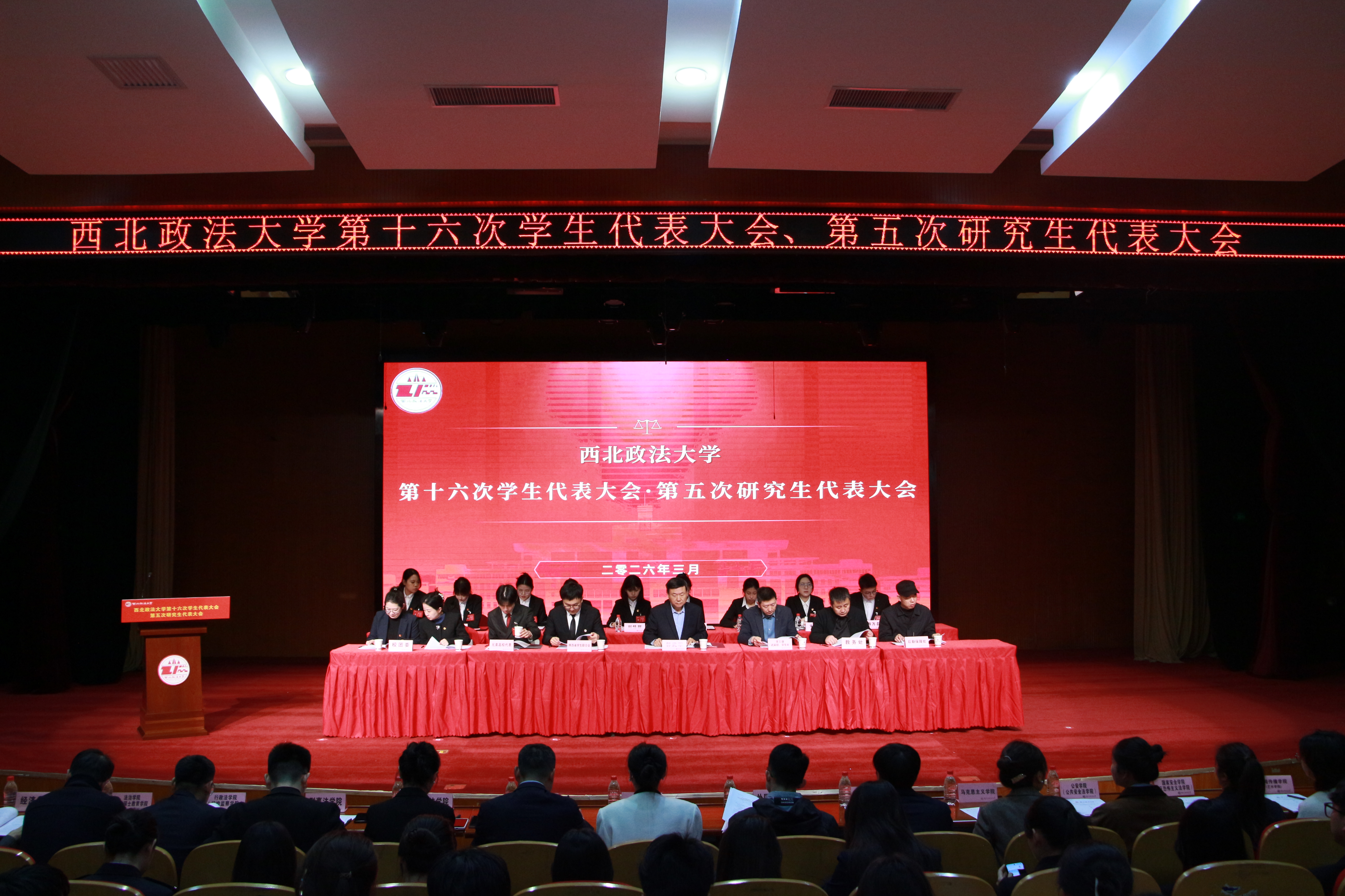 3月21日,我校第十六次学生代表大会、第五次研究生代表大会在长安校区满天星报告厅召开。校党委副书记郭武军出席会议。 郭武军代表学校党委向大会的召开致以热烈祝贺,充分肯定学生会、研究生会立足学校发展大局,围绕学生成长成才,在人才培养、校园建设、社会服务等方面作出的积极贡献。他向全校各级团学组织和广大青年学生提出三点希望:一是强化思想引领、筑牢信念根基,做社会主义现代化建设的接续奋斗者;二是坚守服务宗旨、立足学生本位,做同学们成长路上的贴心守护者;三是深化改革创新、锻造过硬队伍,做团学组织建设的示范引领者。 大会听取和审议了西北政法大学第十五届学生会工作报告、第四届研究生会工作报告,选举产生了第十六届学生会委员会、第五届研究生会委员会、第十六届学生会主席团、第五届研究生会主席团。 陕西省学生联合会主席宋宇飞、西安交通大学研究生会主席团成员吕泽州分别代表省学联、兄弟院校向大会致辞,高度肯定了我校学生会、研究生会开展的各项工作。北京大学、中国人民大学、中国政法大学、西安交通大学等40余所省内外高校发来贺信。 春山可望,岁月可为。新一届学生会、研究生会将在校党委坚强领导、省学联和校团委精心指导下,团结带领西法大学子勇担使命、奋发进取,以青春担当助力学校高质量发展! 党委学工部、校团委、教务处、后勤保障处等部门负责同志,各学院团委书记以及来自全校的本科生代表和研究生代表参加大会。 (供稿:校团委 撰稿:齐格 审核:秦音)