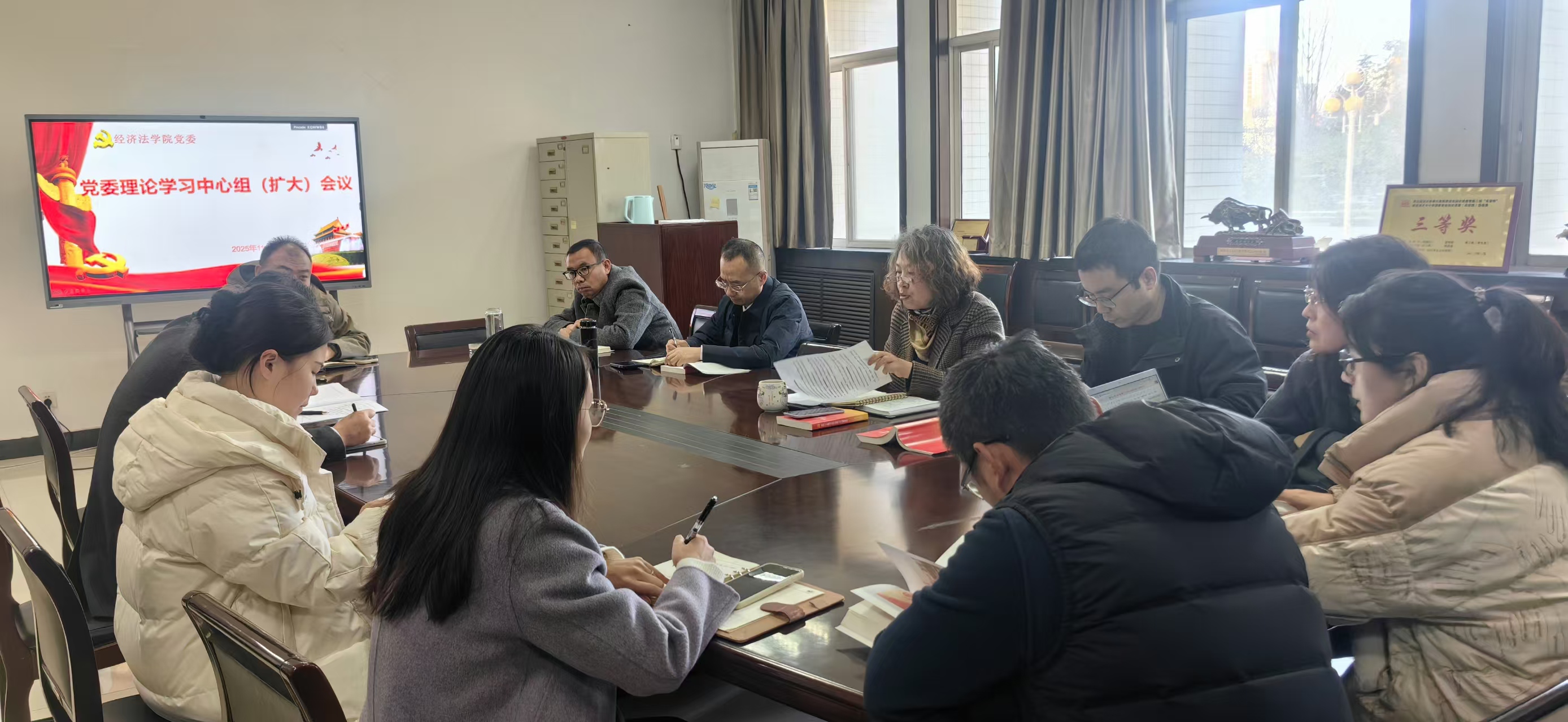 11月20日,经济法学院党委召开理论学习中心组(扩大)学习会,学院党委委员、领导班子成员、党支部书记及科级干部参加会议,学院党委书记李建梅主持会议。 会议集中学习了习近平总书记对全面依法治国工作作出的重要指示和中央全面依法治国工作会议精神,学习了《中共中央关于制定国民经济和社会发展第十五个五年规划的建议》《习近平谈治国理政》第五卷部分章节及《习近平总书记关于应急管理的重要论述》。 交流研讨环节,党委副书记李恒,学院副院长肖新喜、党支部书记李亚菲、张妤婕结合各自工作实际,围绕学习贯彻党的二十届四中全会精神谈认识、讲体会、谋举措。发言紧密联系学院的学科建设、人才培养、学生管理、社会服务等工作,提出了兼具针对性和可操作性的落实思路,展现了以学促干、求真务实的良好作风。 李建梅在总结中表示,一要强化理论学习,通过“三会一课”等多种形式,学习好、宣传好、贯彻好习近平法治思想和中央全面依法治国工作会议精神;二要明确成果要求,要推出更多高质量研究成果,推动科研成果转化应用,为全面依法治国贡献智慧力量;三要聚焦主责主业,紧扣立德树人根本任务和学科发展核心目标,推动学院高质量发展。 会上还召开宣传工作会议,规范宣传工作要求,并就近期重点工作作出安排部署。 (供稿:经济法学院(知识产权学院) 撰稿:李小斐 审稿:李建梅)