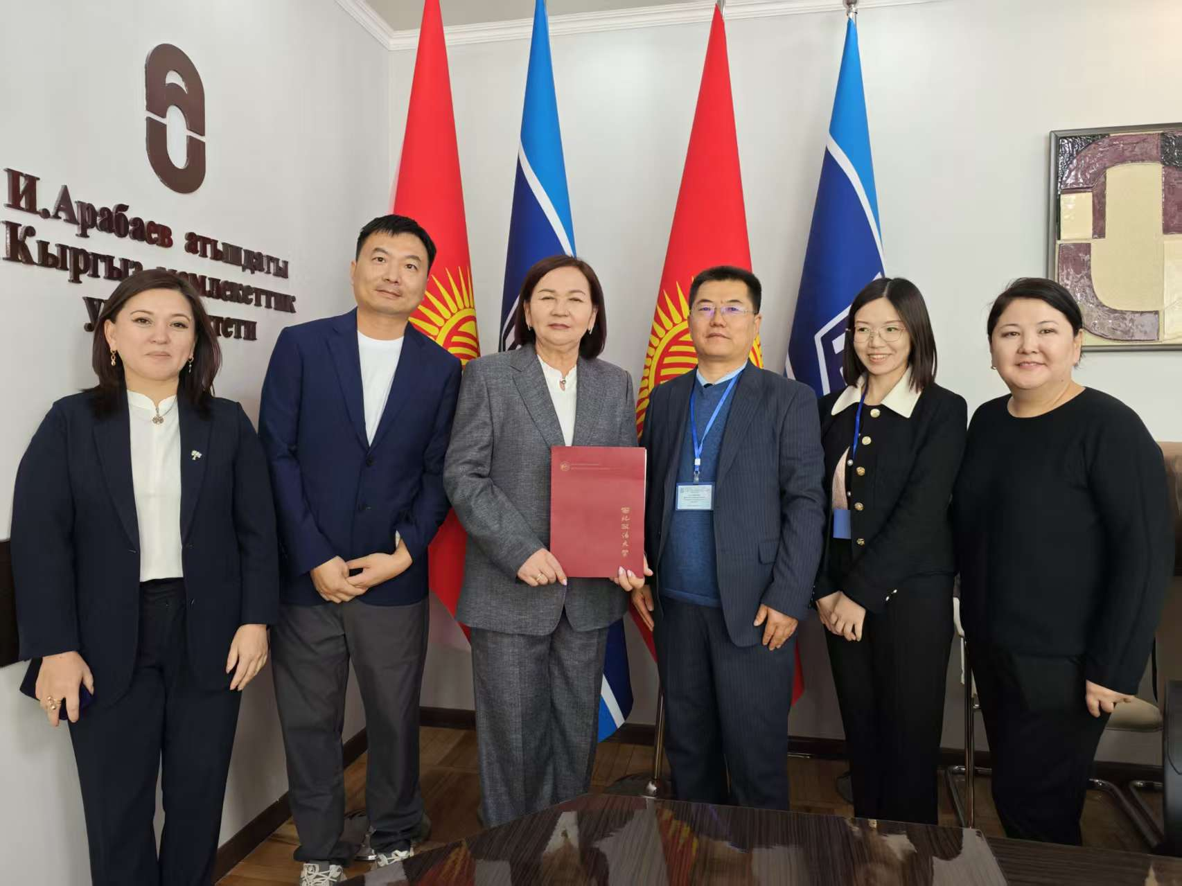 10月9日到13日,为落实我校与吉尔吉斯斯坦阿拉巴耶夫国立大学两校《合作备忘录》,应吉尔吉斯斯坦阿拉巴耶夫国立大学邀请,我校经济学院院长王胜利教授、商学院(管理学院)副院长冯颖教授、外国语学院院长助理孟超博士一行3人赴吉尔吉斯斯坦访问交流。 10月10日,代表团出席了吉尔吉斯斯坦阿拉巴耶夫国立大学八十周年校庆庆典活动并在活动中宣读我校党委书记赵万东致该校贺信。在参加主题为“科学、技术与创新在教育中的融合:当前问题与发展趋势”的国际学术会议期间,成员分别作题为“数据要素价值化实现路径研究”“流域水污染防治绩效审计评价研究”和“新文科视阈下中国涉外法治人才培养改革:专业、课程、能力三维重构”的发言,并与参会高校在法学、经济学、财会审计、语言学、教育学方面开展合作办学、教师互派、学生交流、人才培养、师资队伍建设等多元协同合作进行广泛交流。 访问期间,代表团先后与吉尔吉斯斯坦国立民族大学、乌兹别克斯坦塔什干国立大学、匈牙利埃斯特尔哈兹·卡洛伊天主教大学进行合作会谈,务实推进在“一带一路”与“中国-中亚”背景下的高质量交流合作。 本次赴吉尔吉斯斯坦开展交流合作是我校深入贯彻党的二十届三中全会精神和习近平法治思想的生动实践,是我校充分发挥各学院学科优势,推进“一带一路”教育创新合作,促进中吉两国高校教育和研究交叉融合、创新发展的务实举措,必将为推进构建中吉命运共同体注入人才动能、为“一带一路”高质量共建贡献高校力量。 (供稿:国际交流与合作处 撰稿:孟超 审核:陈梦琦)