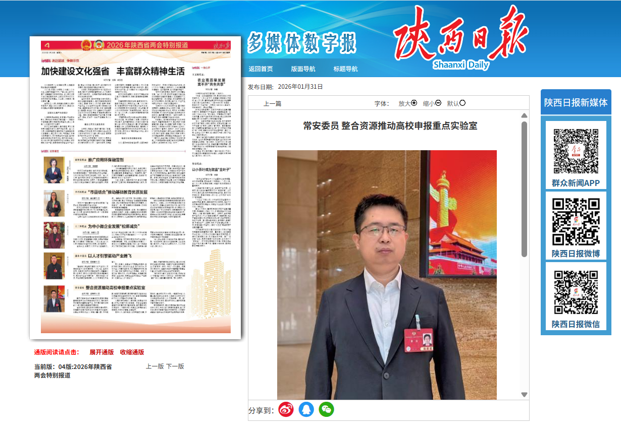 2007-01-19国家级哲学社会科学重点实验室是构建中国特色哲学社会科学自主知识体系、推动研究范式革新的重要战略平台,对于提升高校创新能力、服务国家战略具有关键作用。 省政协委员、西北政法大学教授常安表示,陕西高校在建设哲学社会科学重点实验室时,应整合资源形成合力,破解力量分散、方向趋同、培育不足等难题,更好提升国家级哲学社会科学重点实验室申报成效,充分彰显陕西特有的历史文化底蕴与区位战略价值。 为提升申报竞争力,常安建议加强省级统筹,改变各校单打独斗的局面。可在全省遴选基础较好的高校进行重点培育,每校集中优势资源主攻一个特色方向,并建立三年期的省级培育库,实施动态管理、全程指导。 常安认为,在布局上,应聚焦国家所需、陕西所长,重点规划三大方向:一是国家安全、边疆治理与区域社会稳定;二是中华优秀传统文化传承创新与数字人文;三是共建“一带一路”与高水平对外开放,围绕涉外法治、国际规则等方面开展前沿研究。 常安同时呼吁,强化协同保障,推动实验室实体化运行,与实务部门共建实践基地;在人才引进、职称评审等方面给予政策倾斜,为陕西打造高能级哲学社会科学创新平台提供坚实支撑。 【陕西日报】常安委员 整合资源推动高校申报重点实验室