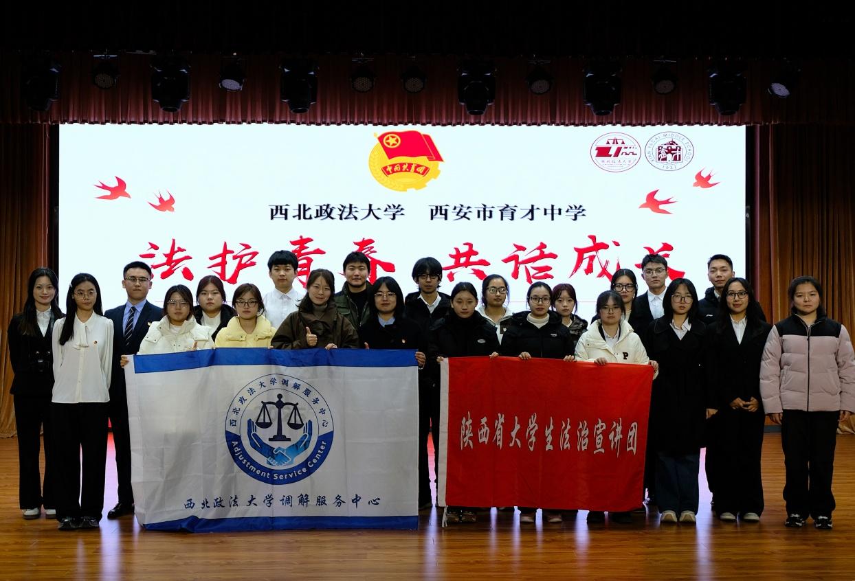 为深入践行习近平法治思想,贯彻“八五”普法规划对青少年法治教育的重点部署,推动“枫桥经验”向校园延伸,在共青团西北政法大学委员会的统一安排部署下,西北政法大学调解服务中心值第十二个国家宪法日来临之际,携陕西省大学生法治宣讲团枫桥经验法治宣讲分团,于12月3日赴西安市育才中学举办了一场别开生面的法治宣讲校际交流活动。活动以“情景剧展演+互动问答+专题宣讲”的多元形式展开,将法治知识融入生动叙事,引导中学生在体验中感知法治、在生活中运用法治。