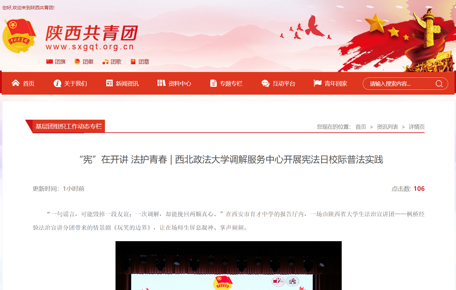 【陕西共青团】“宪”在开讲 法护青春 | 西北政法大学调解服务中心开展宪法日校际普法实践https://www.sxgqt.org.cn/home/news/info.html?id=356357