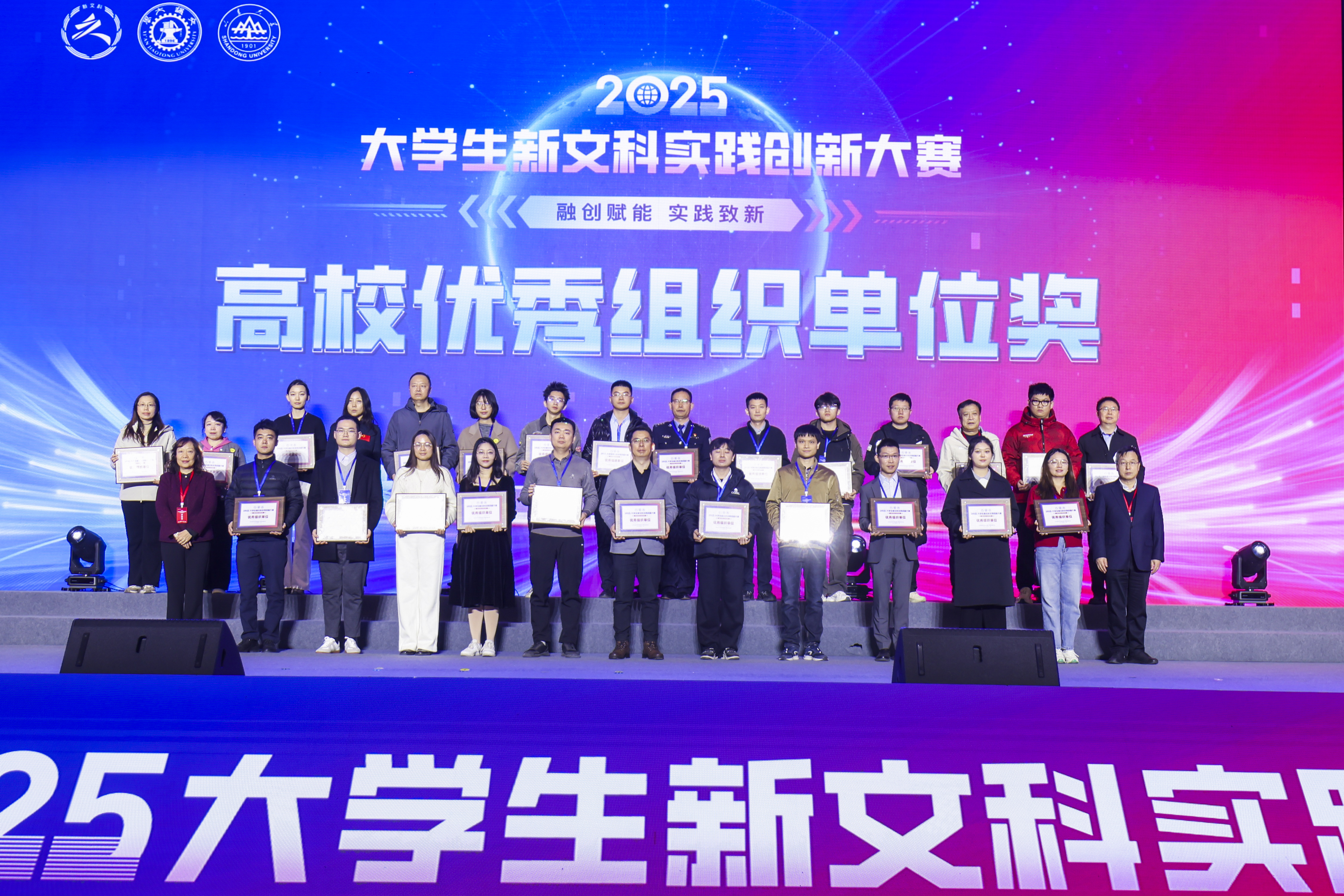11月29日至30日,由全国新文科教育研究中心主办,西安交通大学、山东大学承办的2025大学生新文科实践创新大赛决赛现场赛在古城西安举行。我校参赛队伍斩获银奖2项、铜奖1项及优秀奖5项,学校荣获“优秀组织单位奖”。