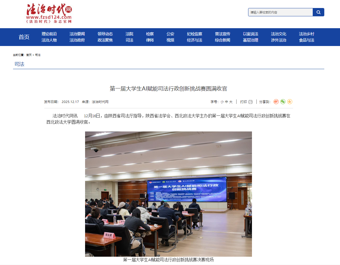 【法治时代】第一届大学生AI赋能司法行政创新挑战赛圆满收官 https://www.fzsd124.com/index/index/n_show?id=170872