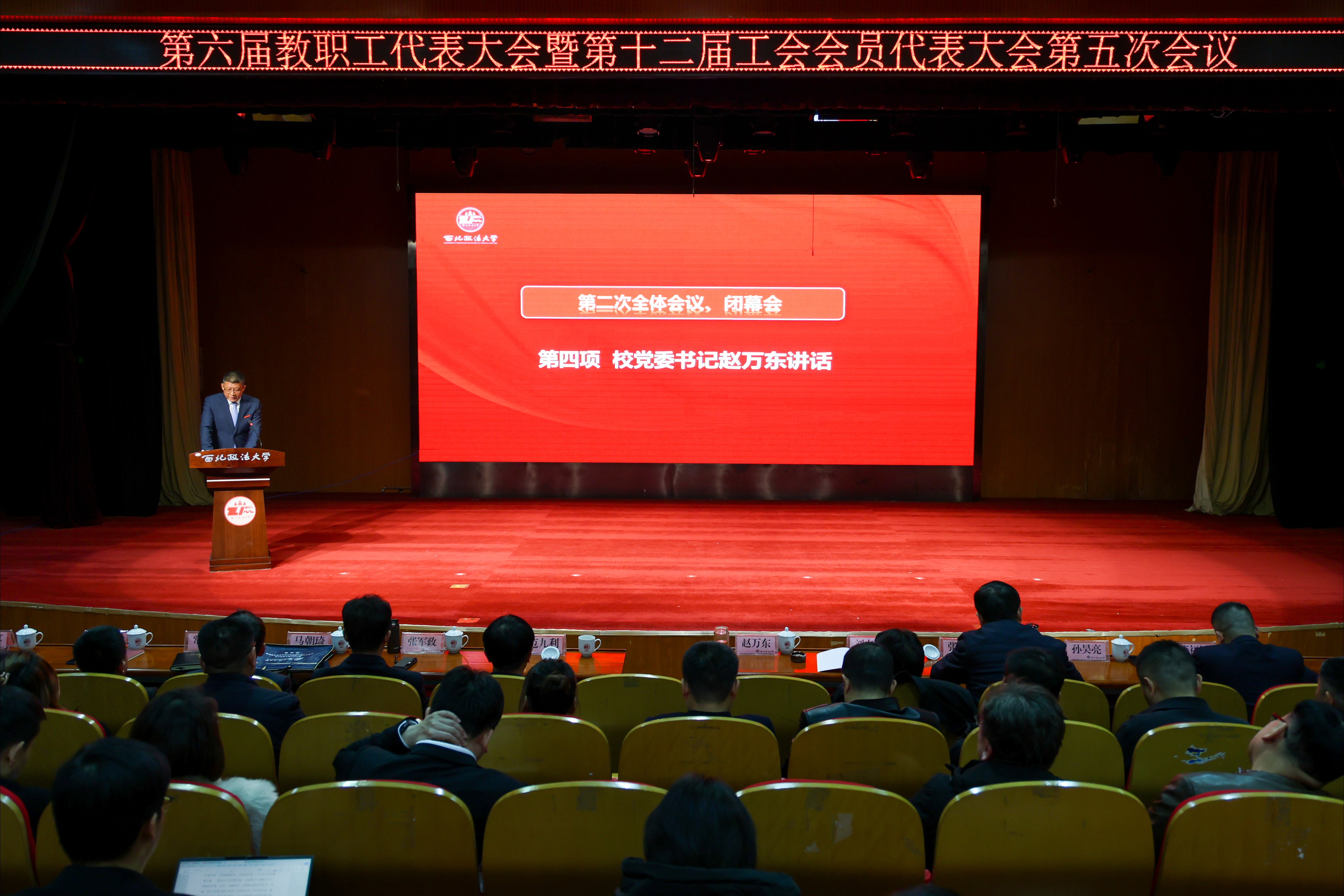 1月16日,西北政法大学第六届教职工代表大会暨第十二届工会会员代表大会第五次会议在长安校区召开。校党委书记赵万东、校长范九利等全体校领导出席会议,正式代表、特邀代表、列席代表参加大会。赵万东发表讲话,范九利作2025年学校工作报告。校党委副书记郭武军、张军政,分别主持第一、第二次全体会议。