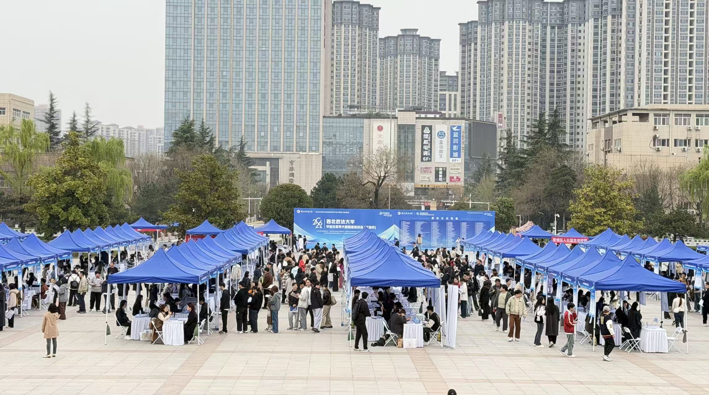 3月26日,2026届毕业生春季大型就业洽谈会(文综类)在长安校区天平楼广场举办。校党委书记赵万东、副校长孙昊亮莅临现场,相关部门负责人,各学院书记、院长、副书记及毕业班辅导员和毕业年级学生参加。校院领导一行在现场了解洽谈会整体开展情况,并与用人单位代表、求职毕业生亲切交流、深入沟通。