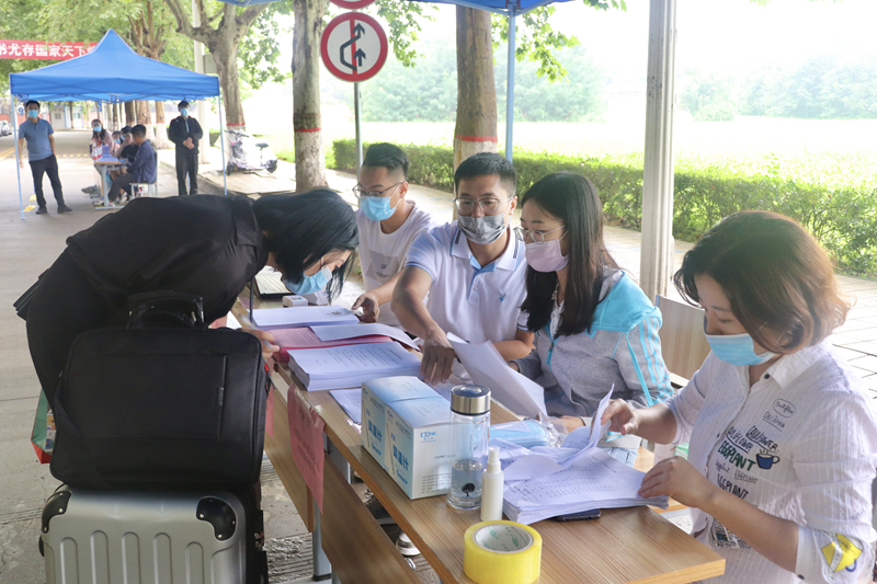 返校学生在扫描西安市“一码通”、出示电子版返校凭证、体温检测无异常后,从长安校区西门进入学校,前往所在学院接待点报到。辅导员查阅电子版“返校凭证”,学生提交纸质版《学生返校健康监测登记表》《学生返校健康承诺书》,领取《宿舍入住卡》《健康登记卡》《疫情防控期间学生行为规范》及水银温度计,签订《自觉遵守疫情防控管理承诺书》后,学生凭《宿舍入住卡》接受测温和行李消毒后方可进入宿舍。