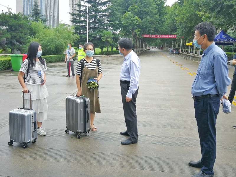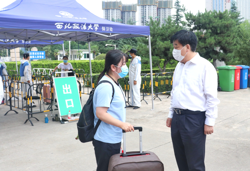 学生返校当日,校党委书记孙国华、校长杨宗科、校党委副书记郭武军等校领导在校门口迎接返校学生,第一时间向同学们送去了关心和问候。