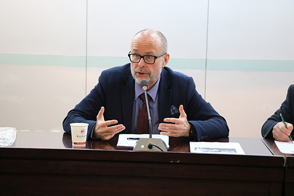 聘任仪式后,Rein Müllerson教授与西北政法大学丝绸之路区域合作与发展法律研究院研究人员进行了学术座谈,就“一带一路”合作下的政府与社会资本合作(PPP)模式的相关国际法问题、中欧基础设施建设与融资的法律问题,中欧、中俄双边关系对当前国际法律秩序的影响,国际社会的极化体系、无极化发展与多中心结构的演化趋势及其可能等进行研讨。此次学术研讨议题前沿、气氛热烈,收到了良好的学术效果。