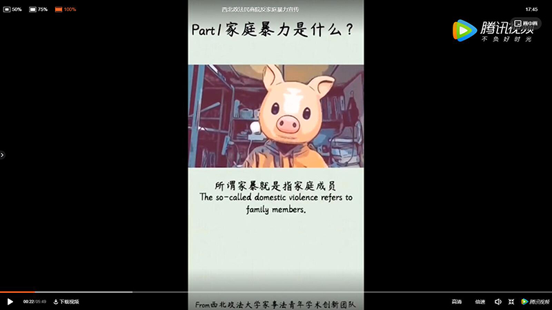 民商法学院家事法青年学术创新团队积极响应,在老师们的专业指导下,学院2018级民商法学(婚姻法学)专业研究生李玉莹、吴京津、管茹、王娇娇、王雪妮等同学制作了“反家庭暴力”视频进行普法宣传并参赛,采用“互联网+普法宣传”形式,通过时下流行的“抖音”平台开展宣传教育,视频一上线便收获了不小的关注与好评。