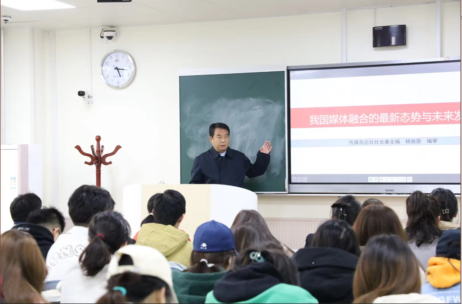 3月2日上午,《传媒》杂志社长兼主编杨驰原受邀在我校长安校区天平楼A座201做题为《我国媒体融合的最新态势与未来发展》专题讲座。新闻传播学院(艺术学院)师生与会聆听,学院刘丽华副教授主持讲座。