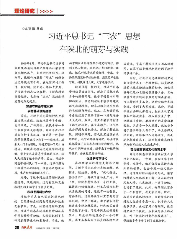 马成副教授与我校新闻传播学院徐鹏老师合撰的:《习近平总书记“三农”思想在陕北的萌芽与实践》一文列入“理论研究”栏目。