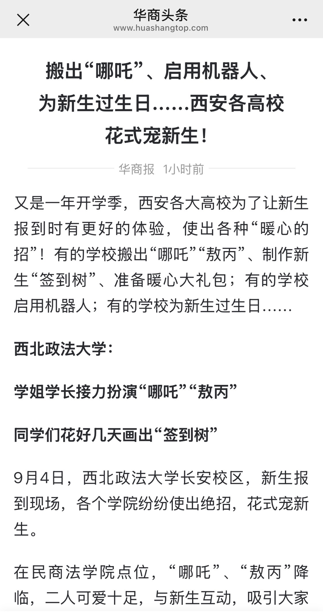 【华商头条】搬出“哪吒”、启用机器人、为新生过生日……西安各高校花式宠新生!https://www.huashangtop.com/topi/1/394701.html