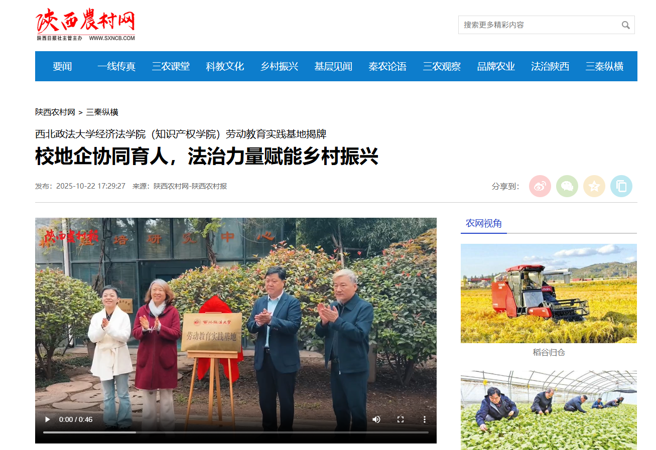 【西部法治报-政法新闻网】校地企协同育人,法治力量赋能乡村振兴 https://www.xbfzb.com/2025-10/23/content_11379067.html#10006-weixin-1-52626-6b3bffd01fdde4900130bc5a2751b6d1