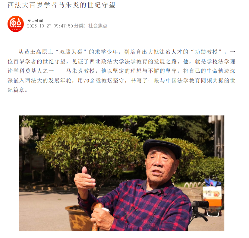 【原点新闻】西法大百岁学者马朱炎的世纪守望 https://yuandian.xiancity.cn/application/fcinformation/mobile/#/ArticleDetail/560129/undefined