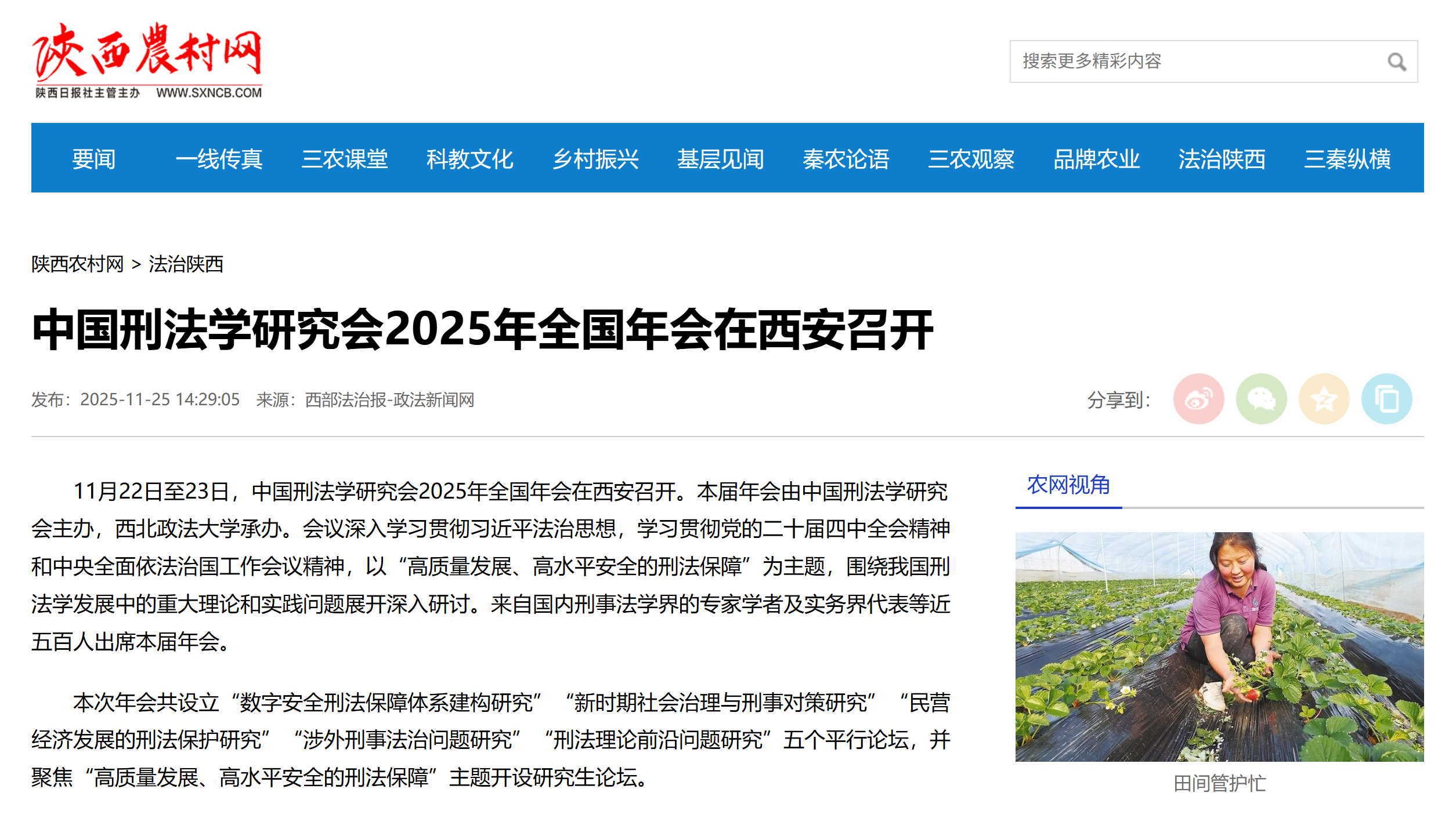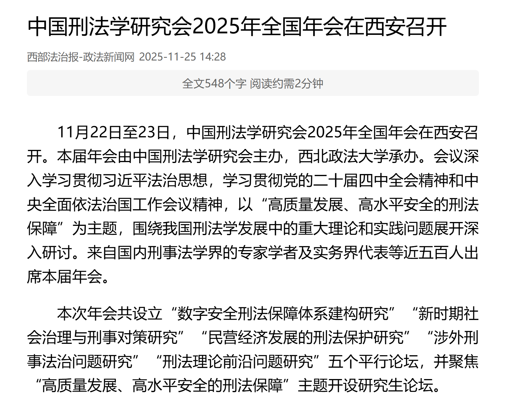 【政法新闻网】中国刑法学研究会2025年全国年会在西安召开https://www.xbfzb.com/2025-11/25/content_11424286.html