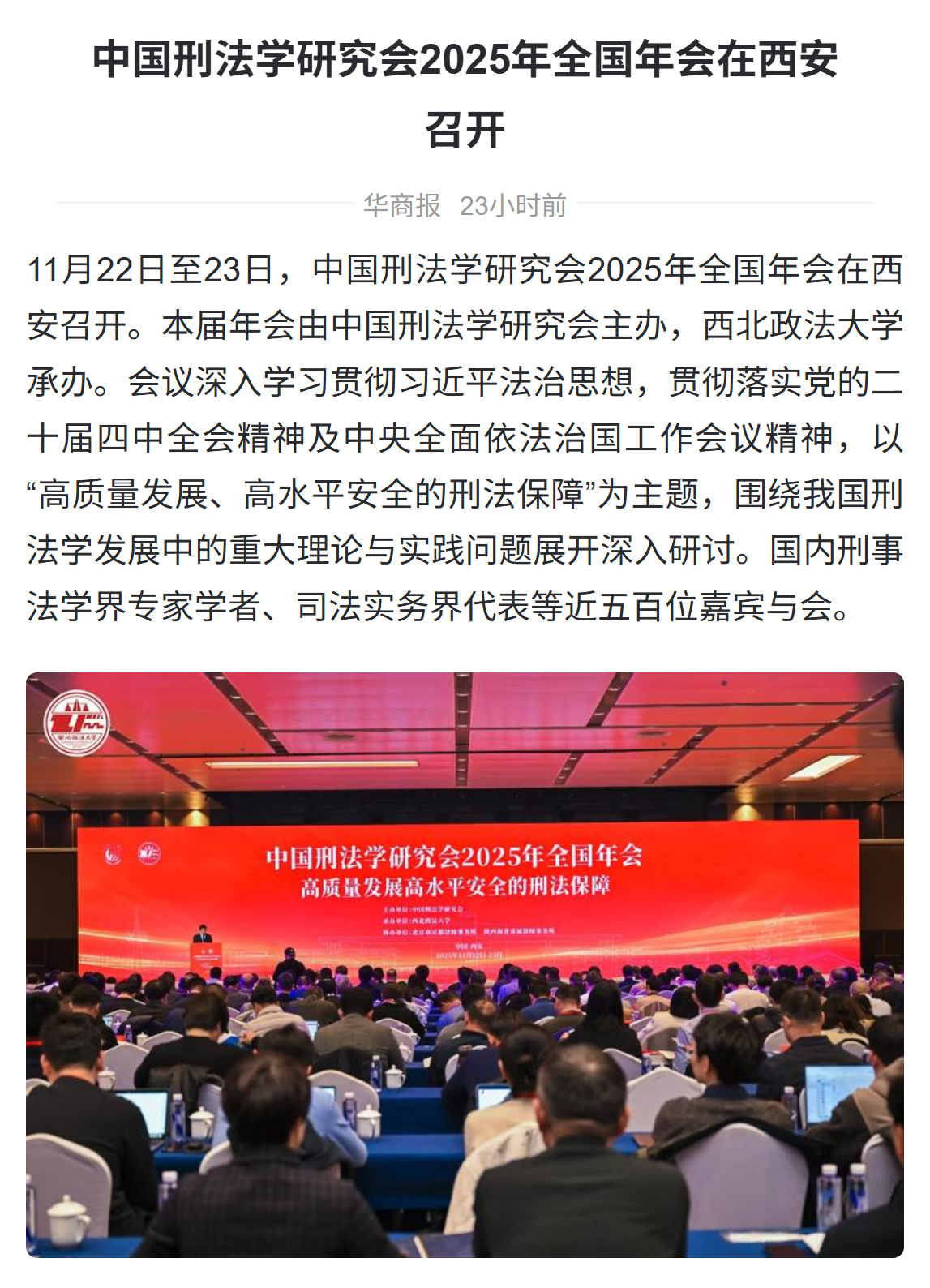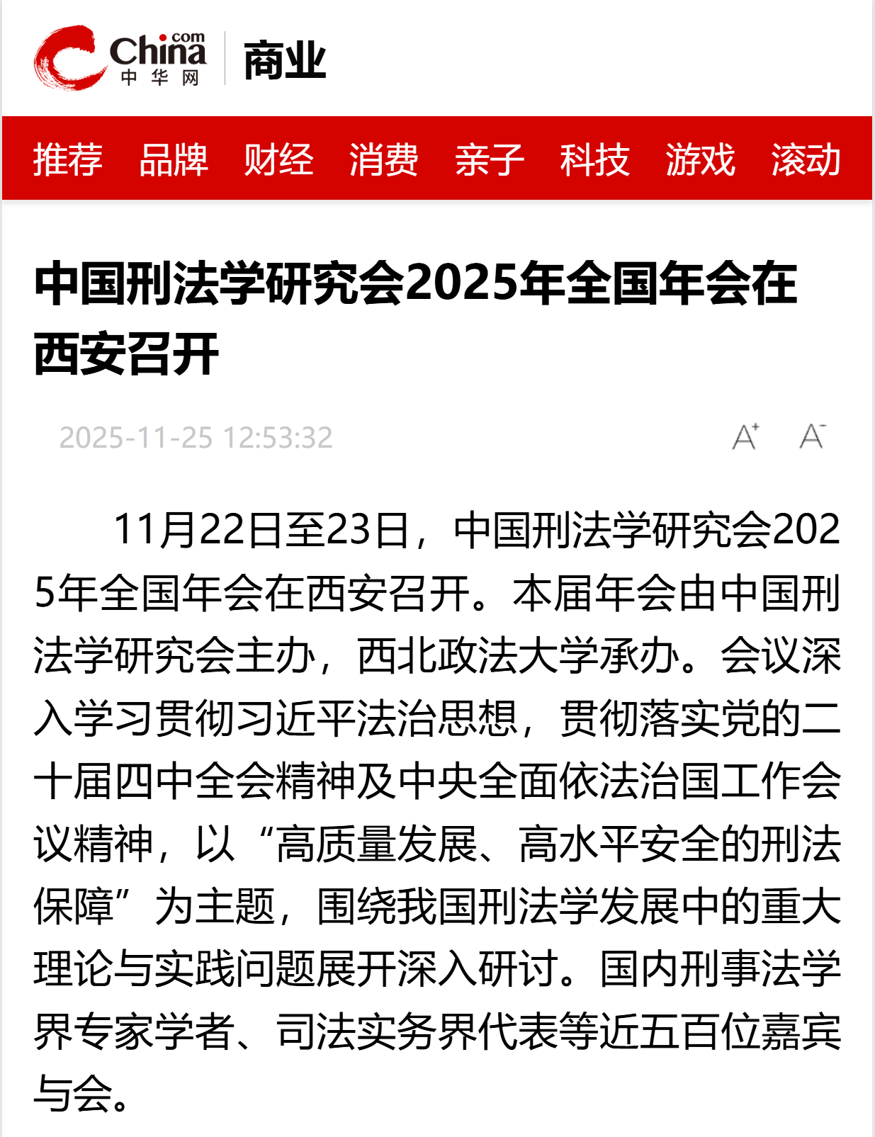 【中华网】中国刑法学研究会2025年全国年会在西安召开https://m.business.china.com/toutiao/13004642/20251125/49020521.html