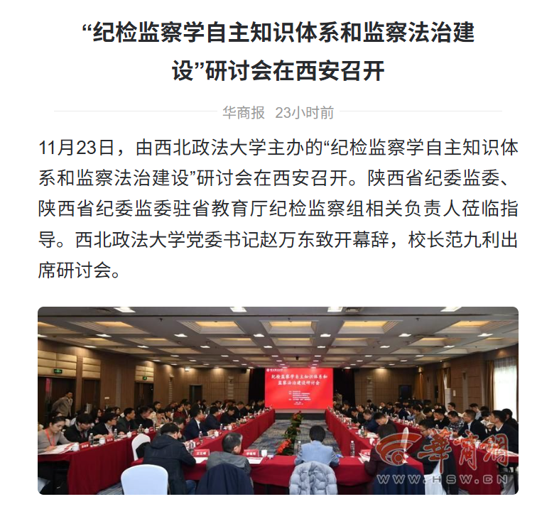 【华商报】纪检监察学自主知识体系和监察法治建设研讨会在西安召开https://www.huashangtop.com/topi/1/404600.html