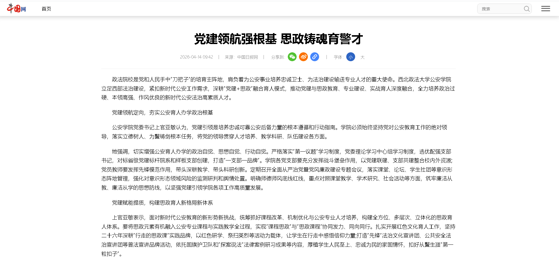 【中国网】党建领航强根基 思政铸魂育警才:http://yingji.china.com.cn/2026-04/14/content_43397306.shtml