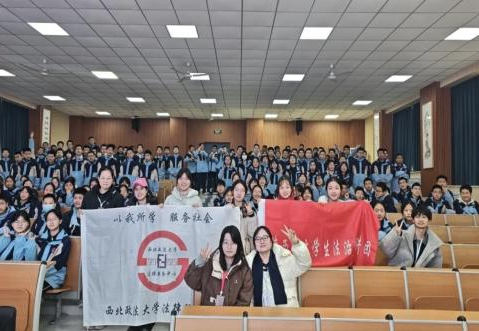 学校将法治实践与志愿服务融合。寒假启动“带着《民法典》返家乡”专项活动,9支学生队伍赴陕西9地市法律援助;“法润三秦·微光成炬”项目已宣讲40余场,服务近4000人。