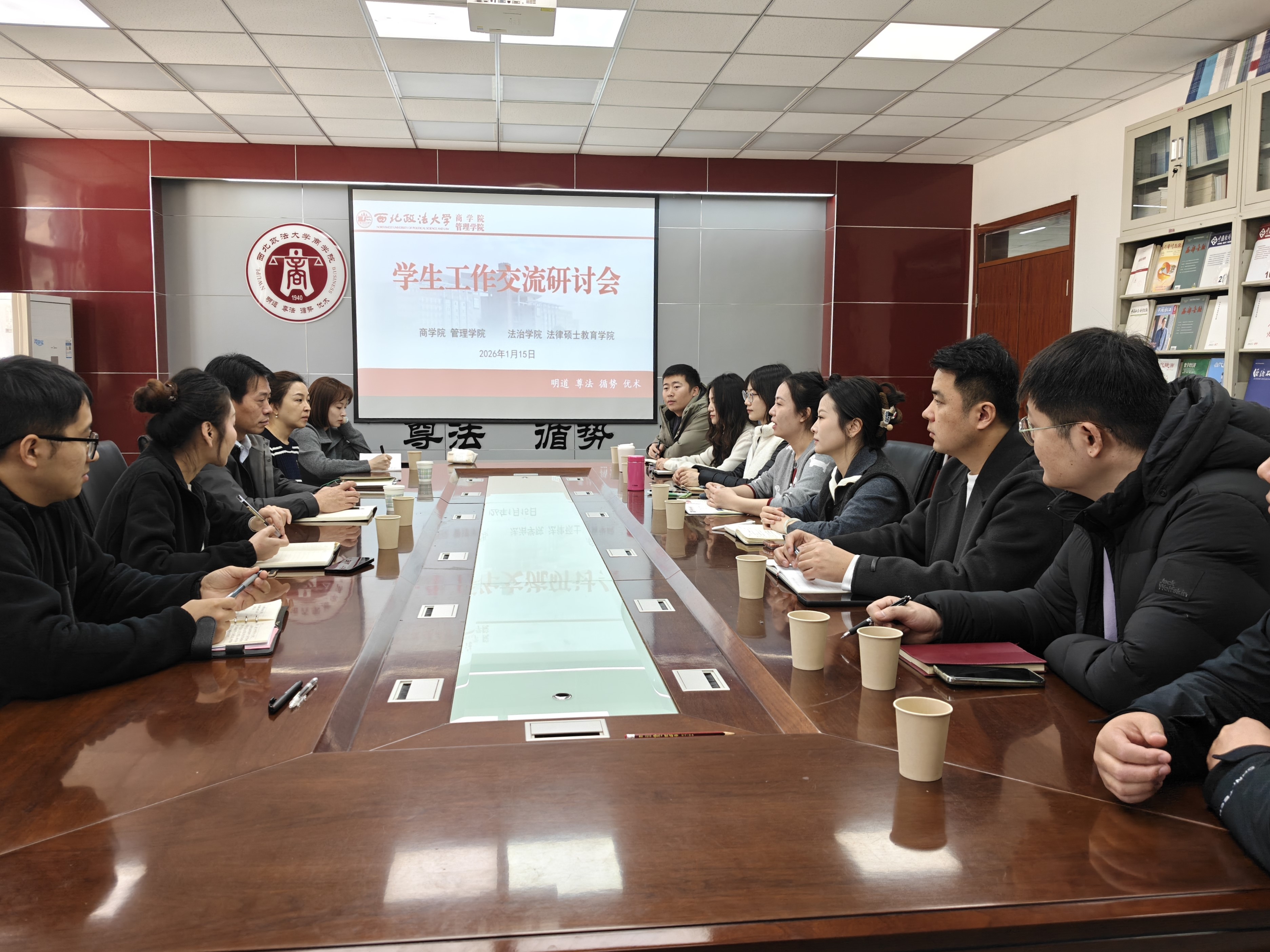 1月15日上午,商学院与法治学院 法律硕士教育学院联合举办学生工作交流研讨活动。两院全体学生工作干部围绕“深化协同、提质增效,共同推动学生工作高质量发展”主题展开深入研讨。法治学院 法律硕士教育学院党委书记张学龙,商学院党委书记燕楠出席活动。