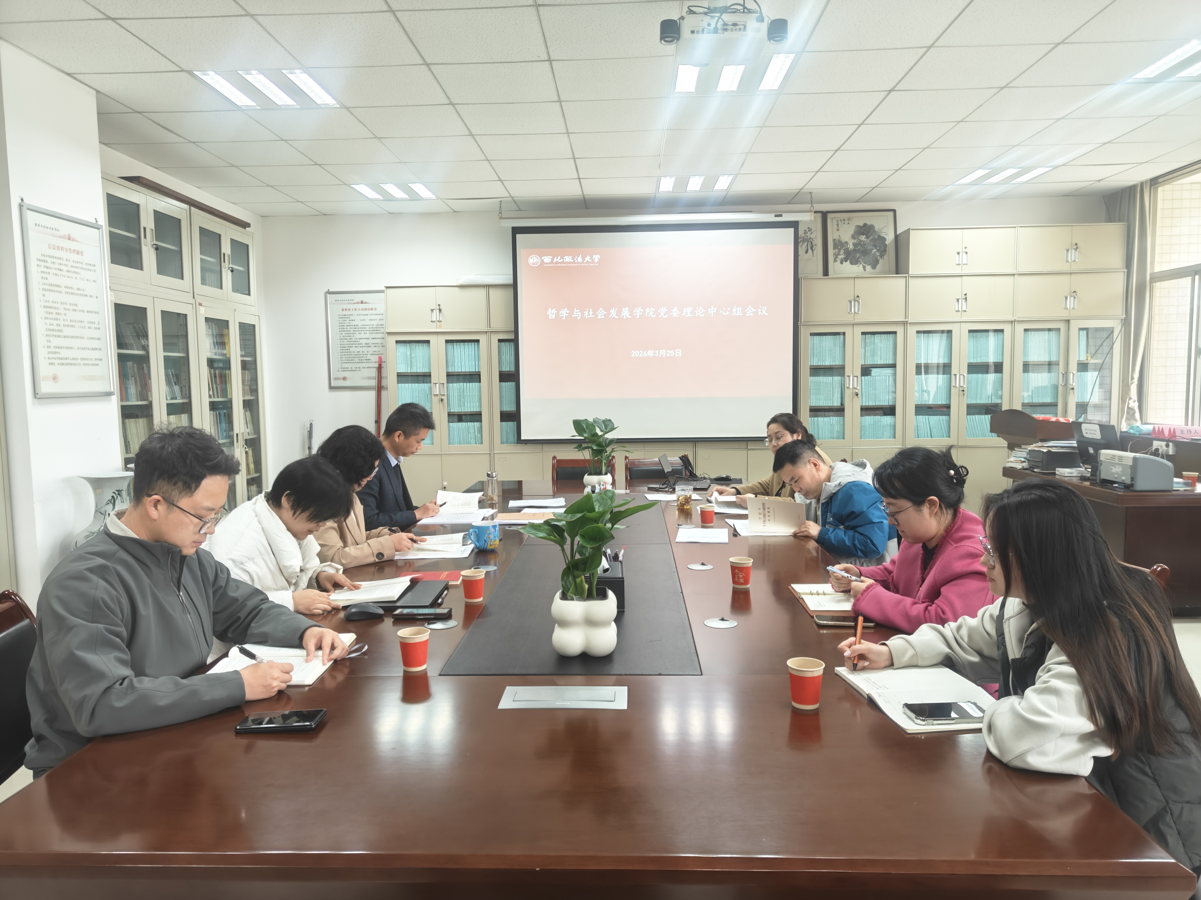近日,哲学与社会发展学院党委召开理论学习中心组(扩大)学习研讨会,学院领导班子成员、党委委员、党支部书记参加会议,学院党委书记赵玎玎主持会议。