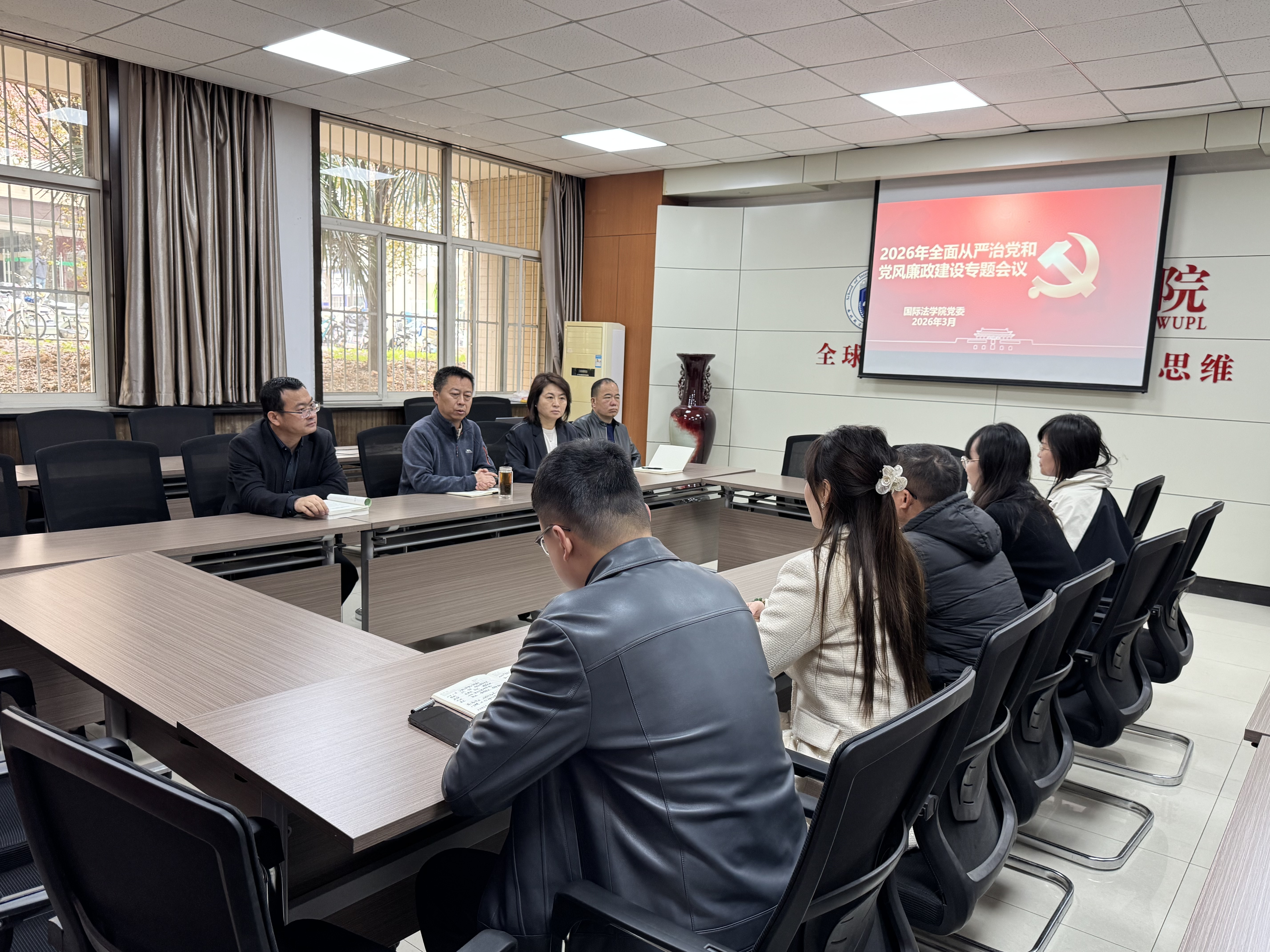 3月25日,国际法学院党委召开2026年全面从严治党暨党风廉政建设专题会议,学院班子成员、各党支部书记、科级干部及全体行政人员参加会议,学院党委书记李立主持会议。