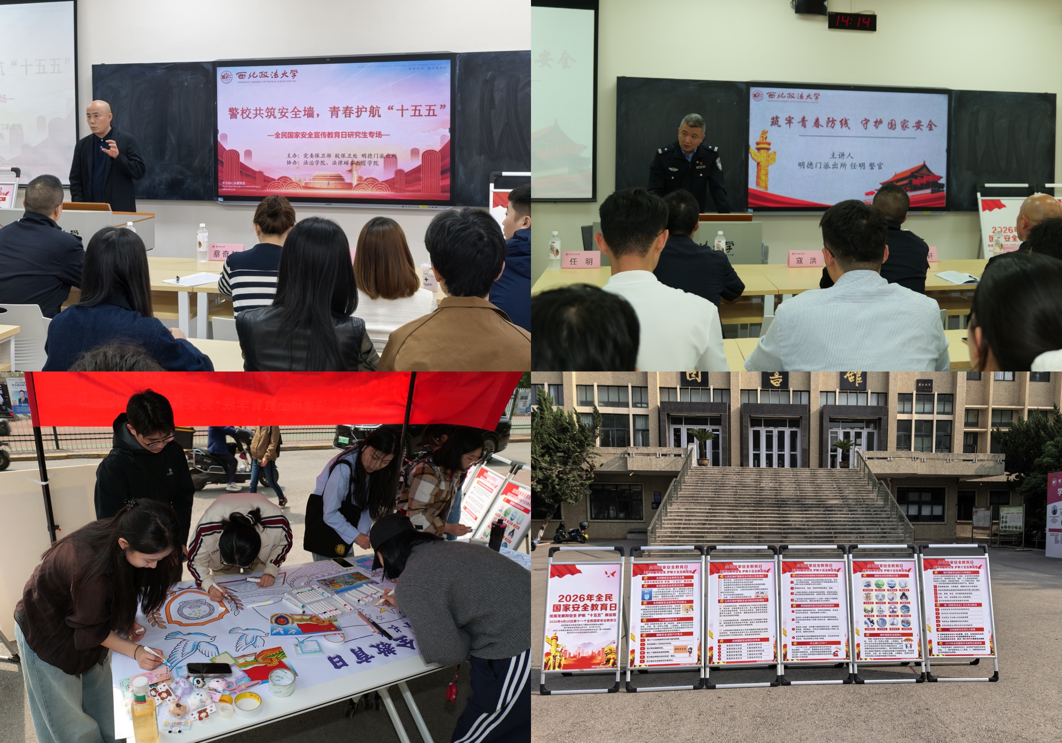 4月15日,在第十一个全民国家安全教育日到来之际,我校在雁塔校区举行“警校共筑安全墙,青春护航‘十五五’”研究生专场活动,活动由保卫(部)处联合明德门派出所和法治学院・法律硕士教育学院联合举办。