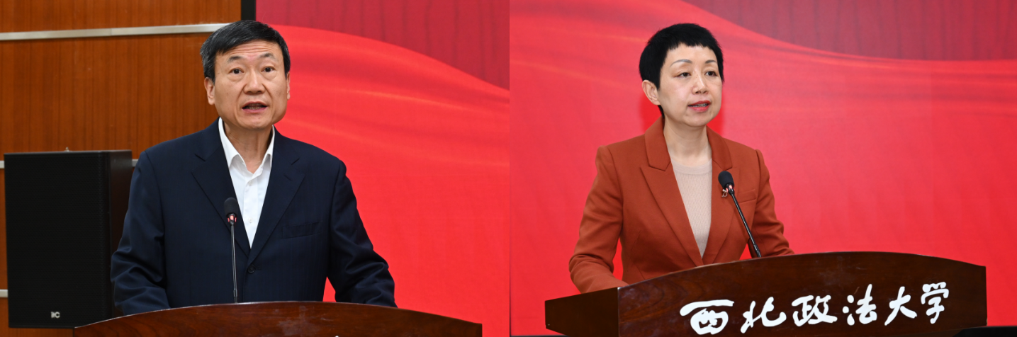 郭武军在致辞中介绍了学校办学历史、学科优势与法治人才培养成果,表示此次研修班是校地协同培育法治人才、服务法治渭南建设的重要举措,学校将依托优质师资与学科资源,精心设置实务导向课程,全力做好教学与服务保障。田瑞在讲话中对培训工作提出要求,希望学员严守纪律、学以致用,将学习成果转化为推动法治建设的实际成效。