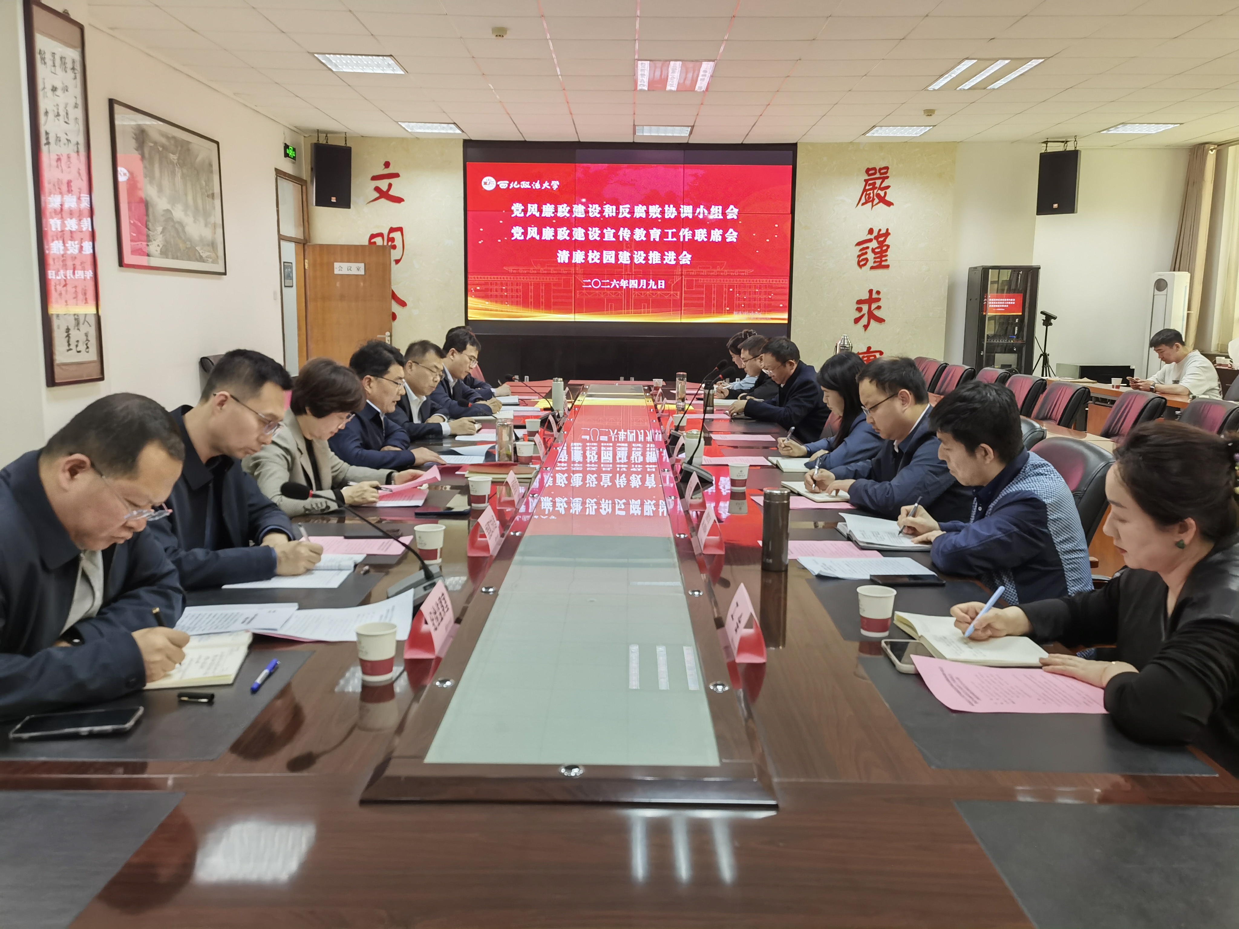 会议集体学习了习近平总书记在二十届中央纪委五次全会上的重要讲话精神,传达学习了2026年教育部深化教育领域腐败整治工作动员部署会、陕西教育系统全面从严治党暨群众身边不正之风和腐败问题集中整治工作会会议精神和全省高校纪检监察工作推进会主要精神,安排部署了2026年重点任务。党委巡察工作办公室、党委教师工作部、财资处、审计处等部门负责人汇报了2026年党风廉政建设和反腐败工作计划。党委组织部、党委宣传部、团委等部门负责人汇报了2026年党风廉政建设宣传教育、清廉校园建设工作计划以及落实新时代廉洁文化建设三年行动计划工作情况。