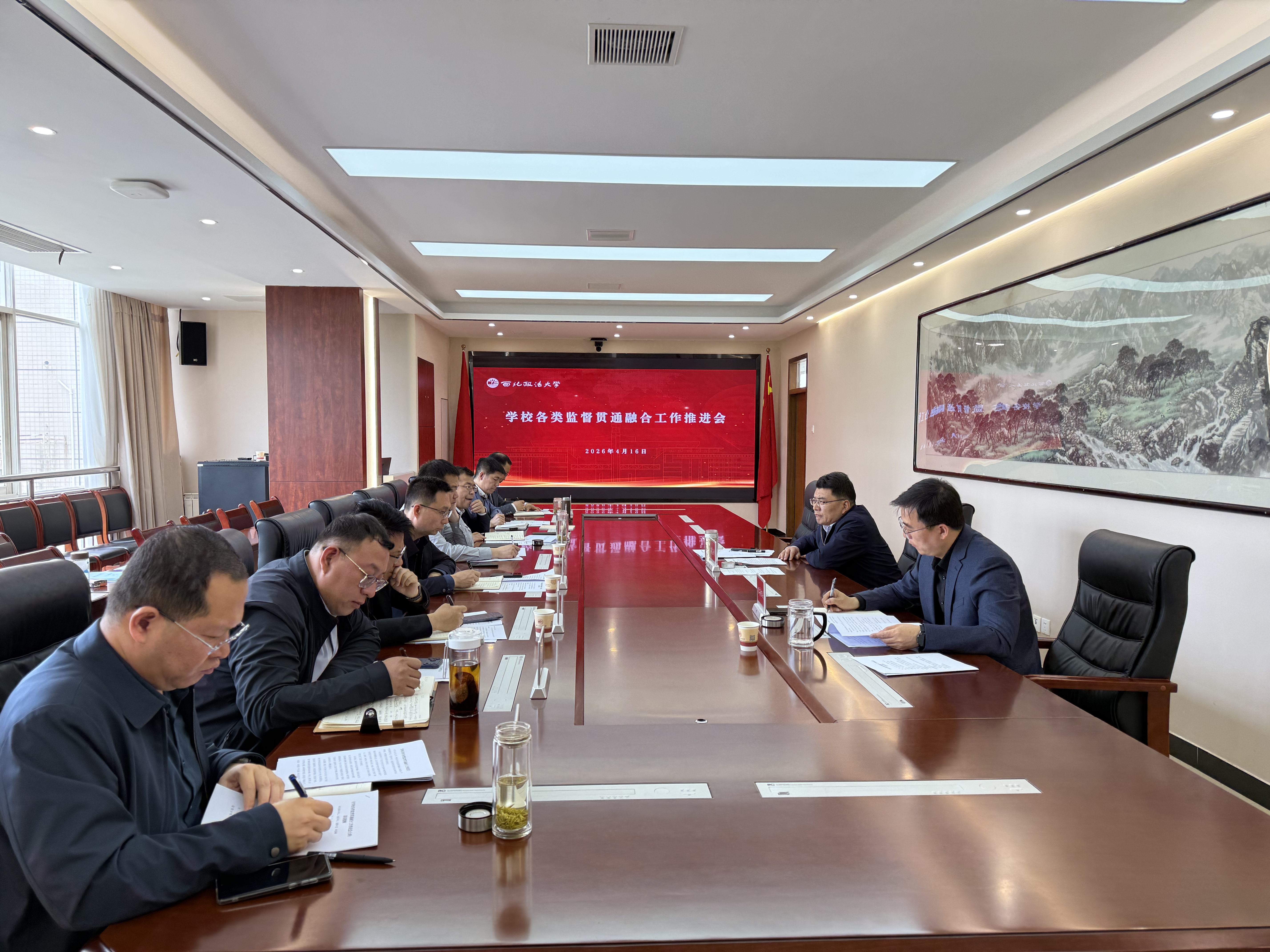 会议强调,要深入学习贯彻习近平总书记关于全面从严治党、健全党和国家监督体系的重要论述,进一步统一思想、凝聚共识,厘清各部门监督职责,打通监督协同壁垒,压实监督工作责任,着力破解当前校内监督存在的分散化、碎片化、衔接不畅、合力不足等突出问题,加快构建纪律监督、组织监督、巡察监督、舆论监督、人事监督、审计监督、财会监督协同发力、同向发力、齐抓共管的校内“大监督”工作格局,为学校高质量内涵式发展、落实立德树人根本任务提供坚强纪律保障。